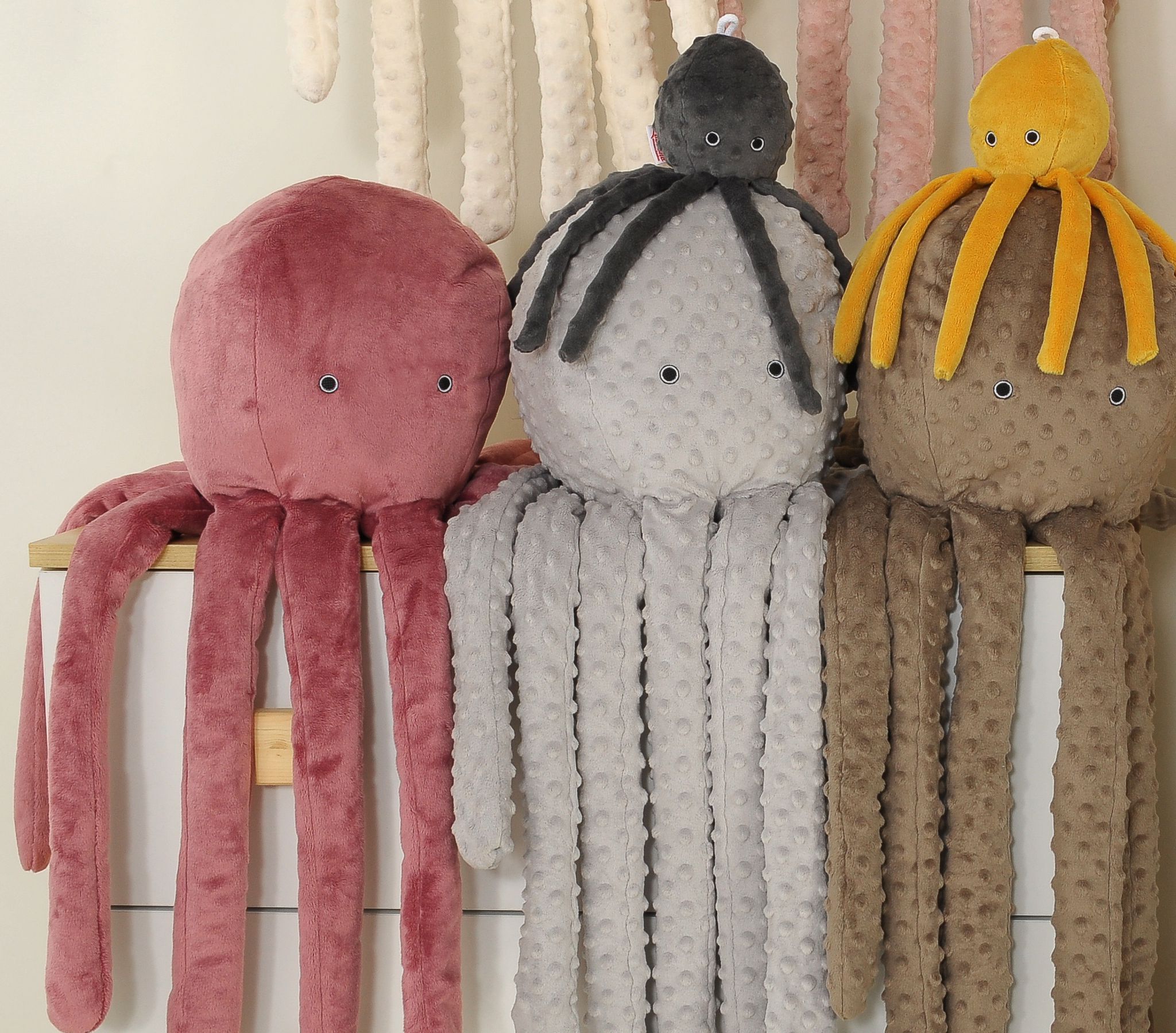 Stubenwagen » Spielzeug Kuscheltiere » Kuscheltier Oktopus » Schmusekrake groß - grau - Polka Dot Minky