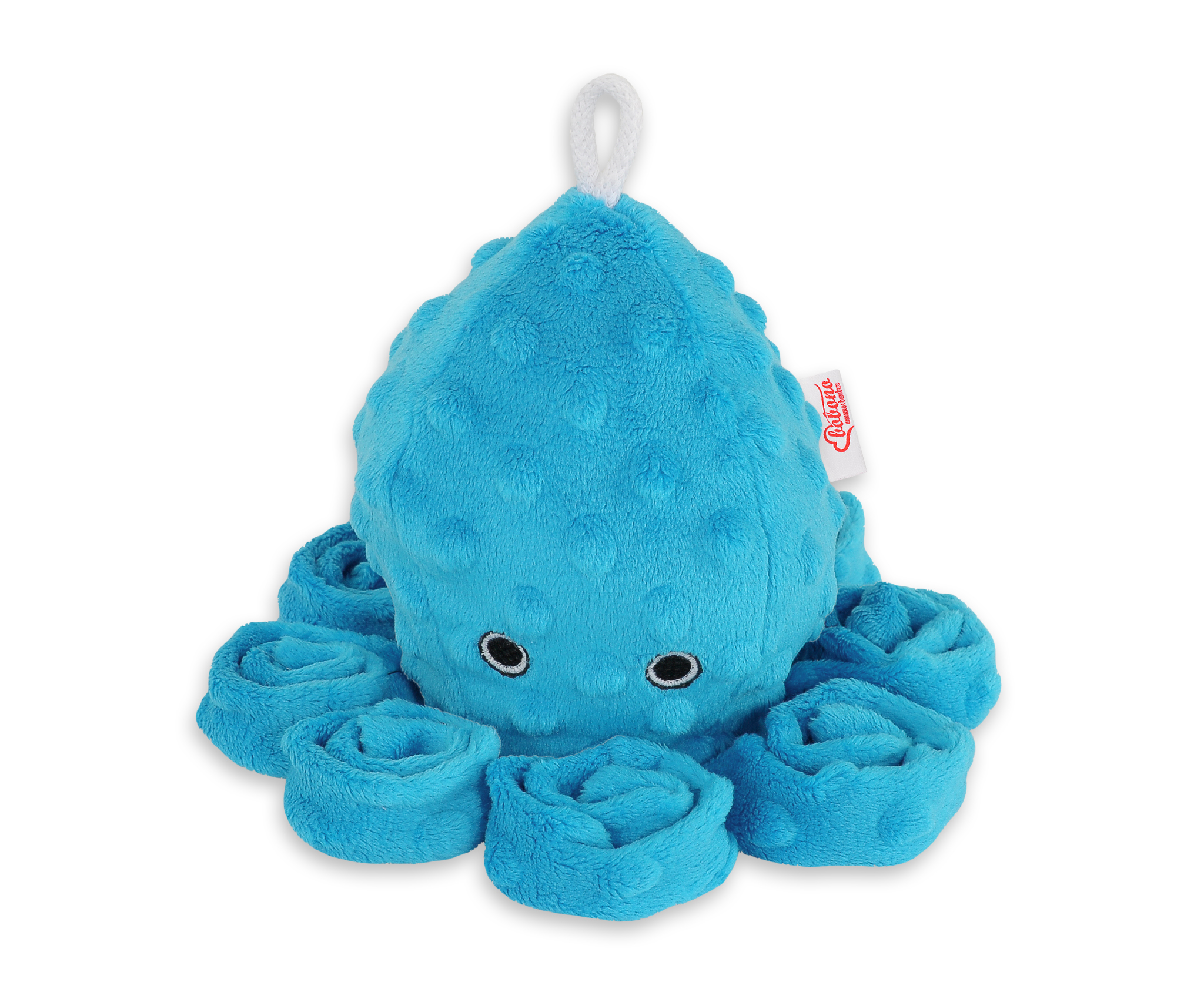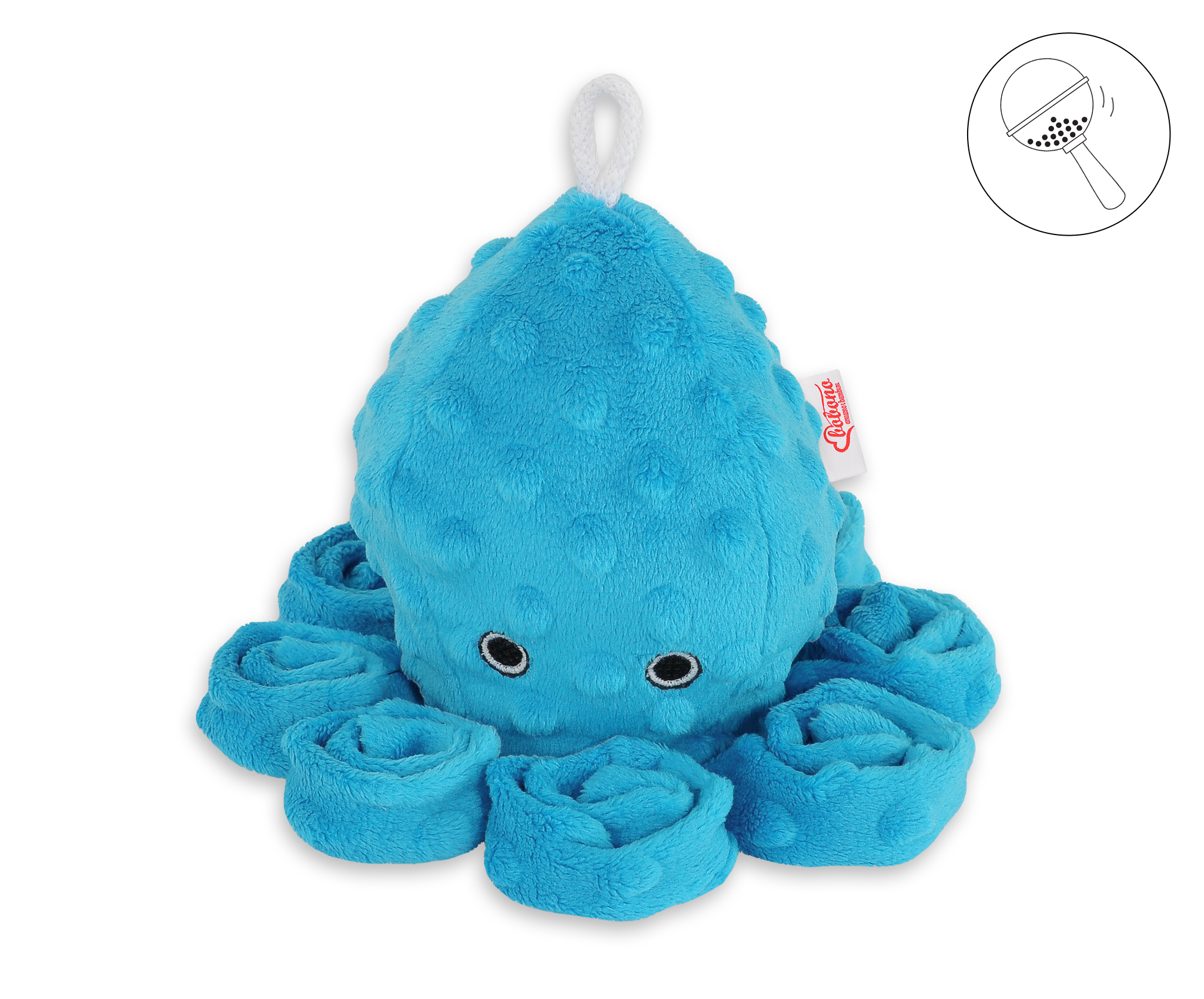 Schmusekrake mit Rassel. Zum schmusen, kuscheln und spielen geeignet. Die Krakenarme sind leicht zu greifen.