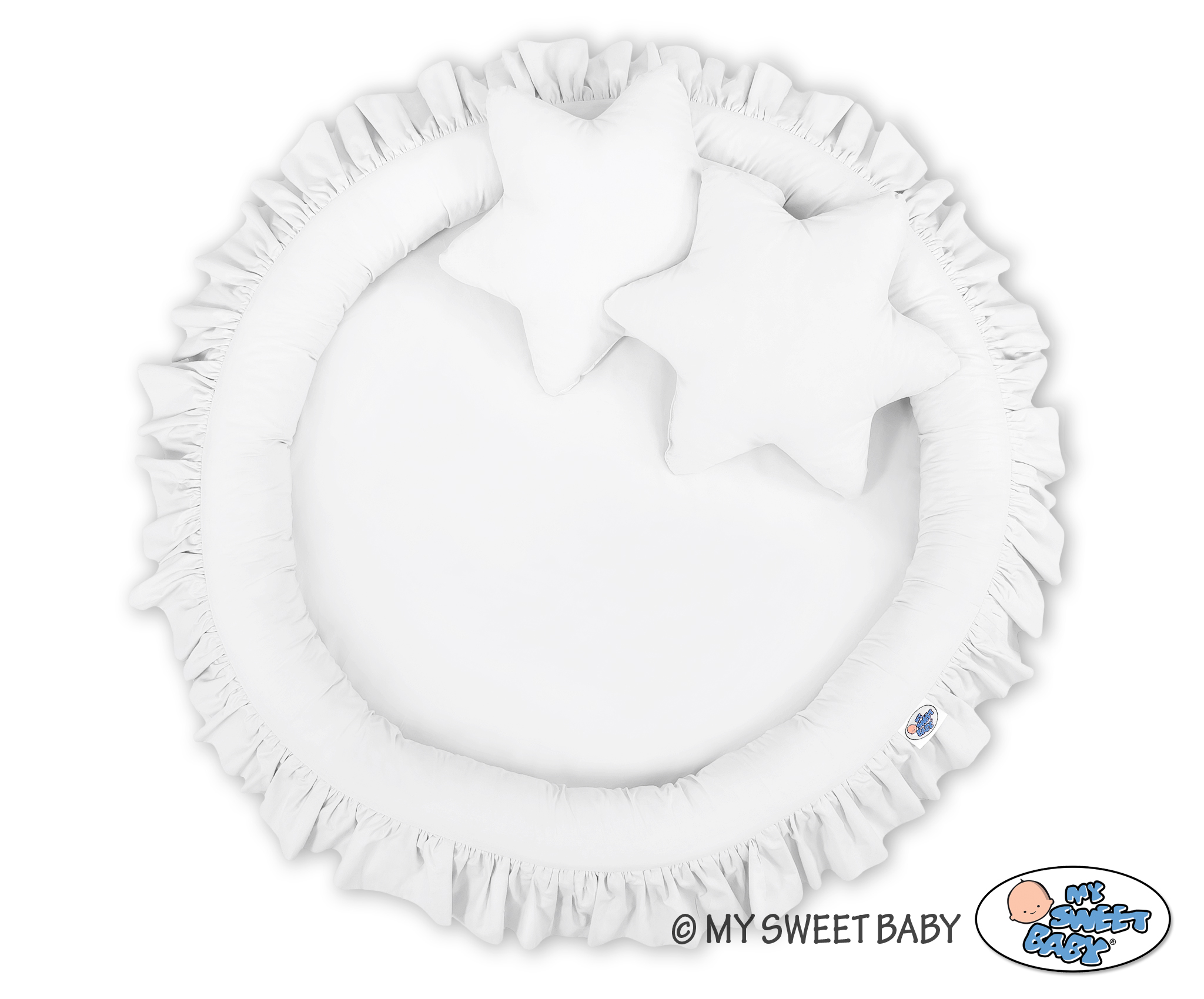 Set: Babyzimmer Betthimmel + Rüschennestchen + Kissen - weiß