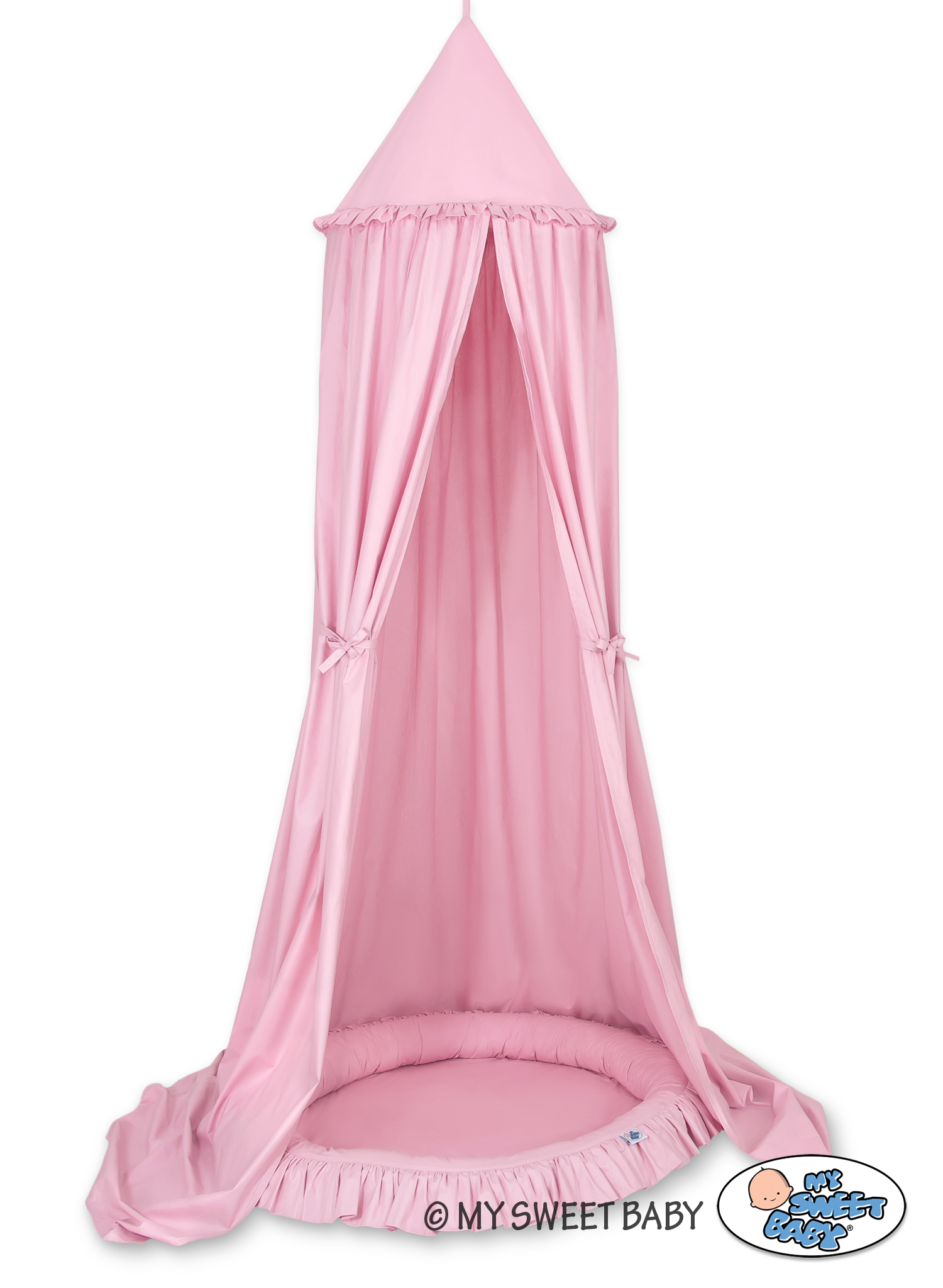 Der Betthimmel in Kombination mit weichen, bequemen Nestchen mit Rüsche schafft einen perfekten Plaz zum spielen. Die weichen Nestchenränder bieten Sicherheit für Kleinkinder. Der Bezug ist aus reiner Baumwolle mit Ökotex Zertifikat. Der Rand ist mit Eco Fillbal Gewebe gefüllt. Das Gewebe ist weich, federnd, gleichzeitig voll luftdurchlässig. Der Boden des Rüschennestchens ist mit einem weichen Inlett aus antiallergischem Gewebe ausgestattet. Das Inlett ist rausnehmbar. Der Bezug kann bei 30 Grad gewaschen werden.