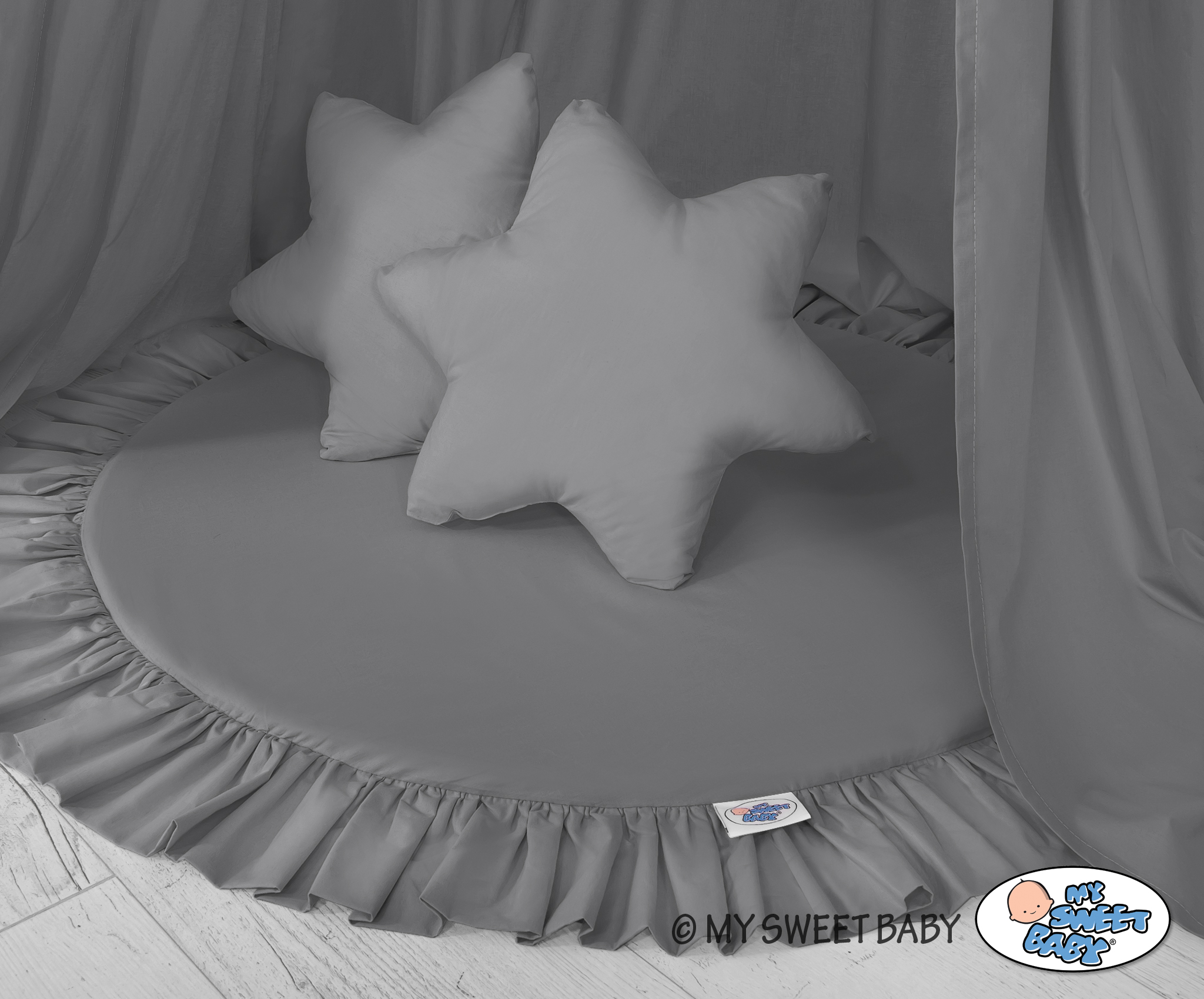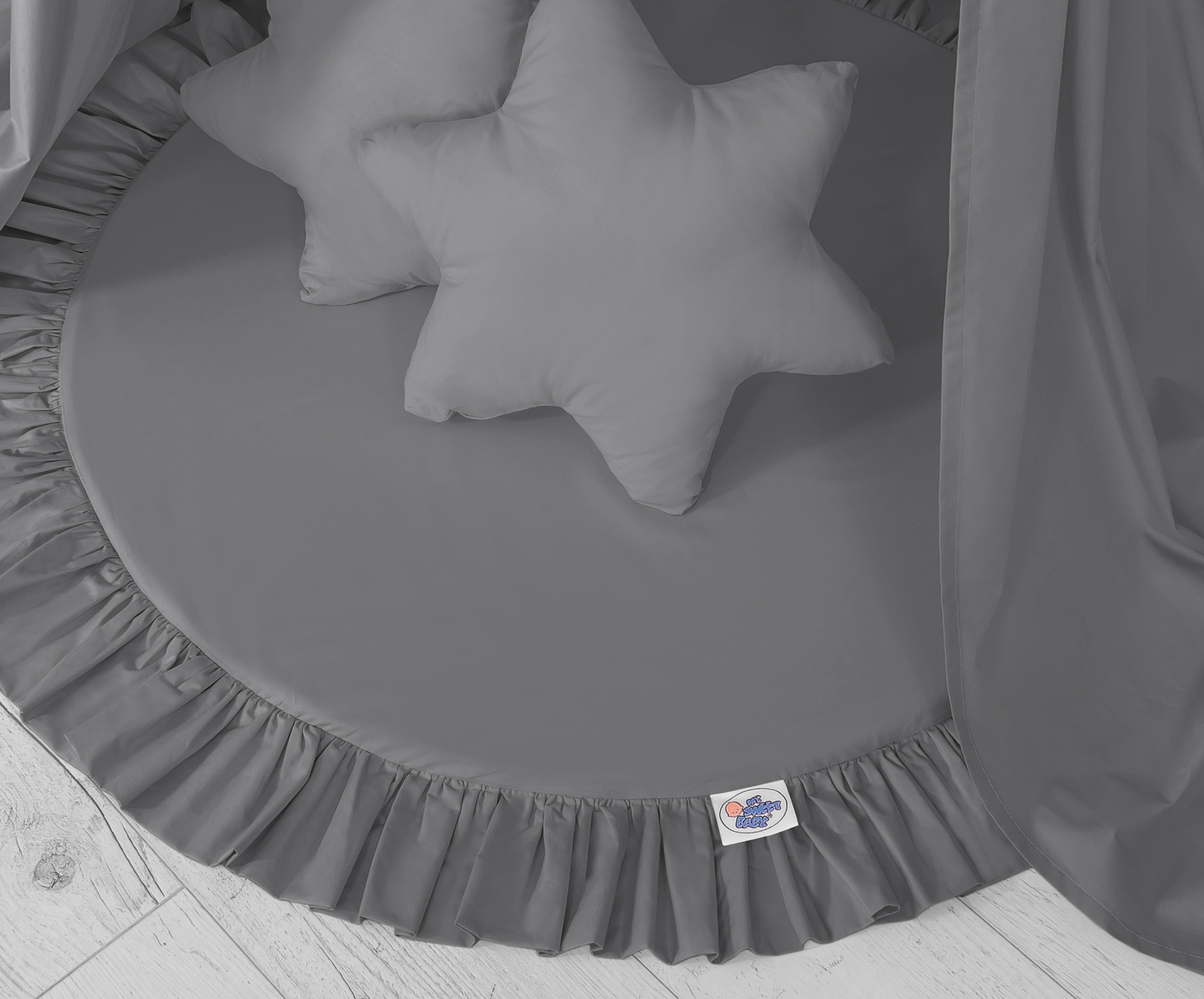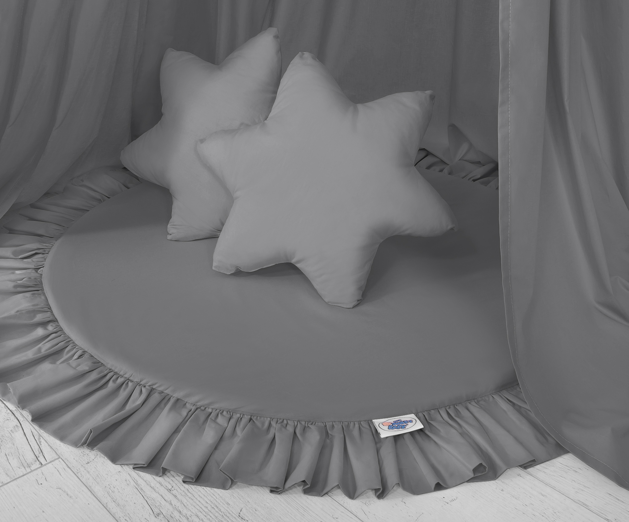 Der Himmelstoff besteht aus sicheren, 100% Baumwolle mit Ökotex Zertifikat. An den Seiten sind praktische Bändchen angenäht. Sie erlauben den Stoff je nach Bedarf oder Idee zusammen zu binden. Der Ring oben kann abgenommen werden. Der Himmelstoff ist bei 30 Grad waschbar. Der Betthimmel in Kombination mit weichen, bequemen Bodenmatte schafft einen perfekten Plaz zum spielen. Die Bodenmatte schützt vor Kälte und ist angenehm weich. Die Einlage kann aus der Spielmatte herausgenommen werden und der Bezug gewaschen werden. Der Spielmattenbezug ist aus reiner Baumwolle mit Ökotex Zertifikat hergestellt.