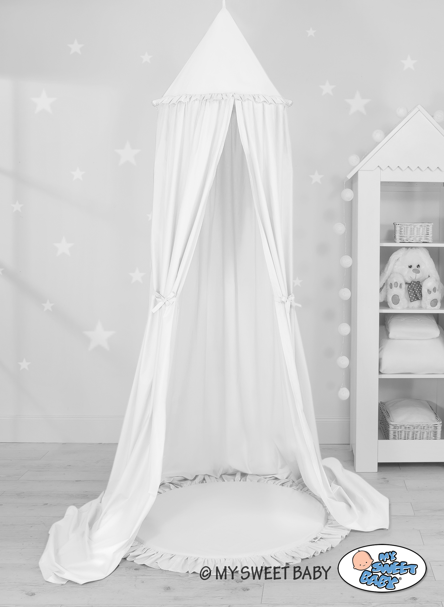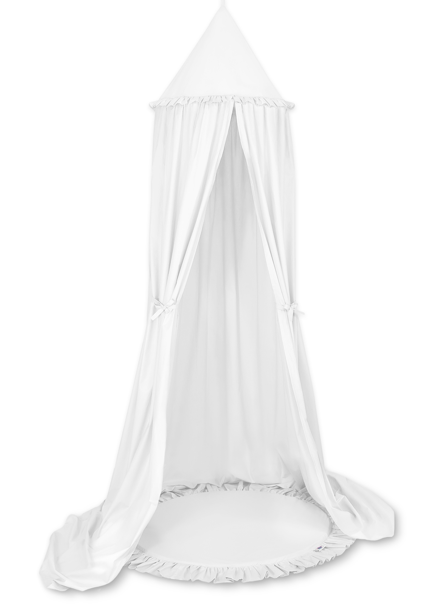 Ein effektvoller Hängehimmel für das Kinderzimmer. Unser Himmel kann als außergewöhnliche Dekoration, oder auch als ein gemütliches Spielplätzchen dienen. Über dem Kinderbett aufgehängt schützt der Himmel vor zu viel Licht und dämmt die Geräusche, so dass ein gemütlicher Ruheplatz entsteht. Der Himmel kann auch separat leicht an die Decke angebracht werden. Die Länge von 260 cm erlaubt die Enden am Boden zu drapieren. Somit entsteht ein Versteck und Spielplatz für ältere Kinder.