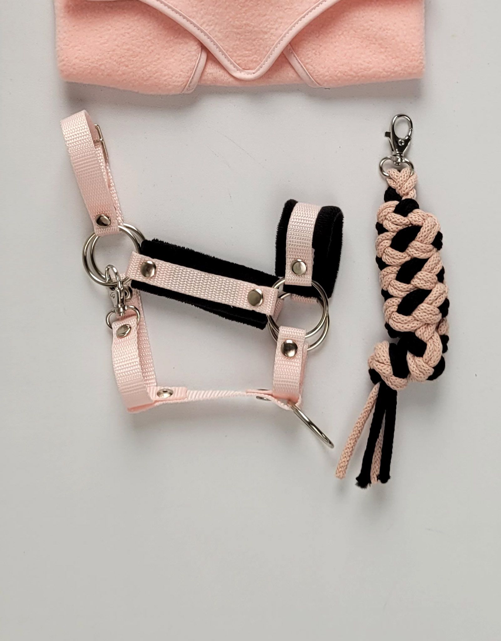 Ein praktisches und haltbares Halfter mit Pelz für das Hobby-Pferd. Hergestellt aus hochwertigem Gurtband von 1,5 cm Breite und weichem Minky-Material. Verstellbare Schnalle für eine perfekte Anpassung an das Pferd. Einfacher Verschluss mit Karabinerhaken. Metallelemente des Halfters - wie die Verschlüsse, Metallringe, Schnalle zum Verstellen und Karabinerhakenverschluss in silberner Farbe. Alles elegant und praktisch. Das Halfter ist einfach zu handhaben, robust und schmutzabweisend. Es werden viele modische Farben angeboten, die perfekt auf unsere Hobbypferde abgestimmt werden können.