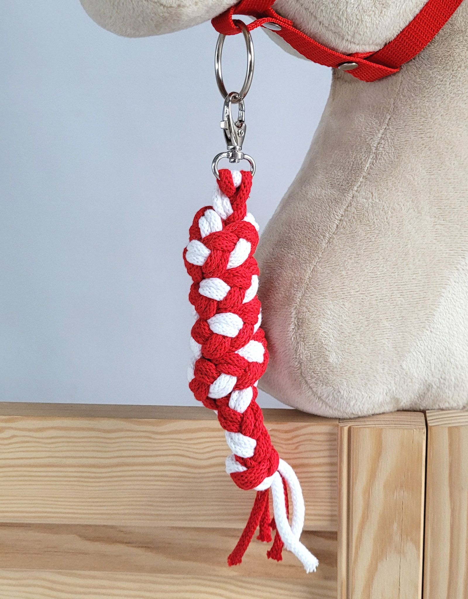 Stubenwagen » Spielzeug Kuscheltiere » Hobby Horse - Steckenpferde und Zubehör » Halfter mit Pelz mit Anbindestrick aus geflochtener Kordel » Set für Hobby Horse: Die Halfter A3 mit weißem Pelz + Kordel-Anbindestrick -weiß-rot