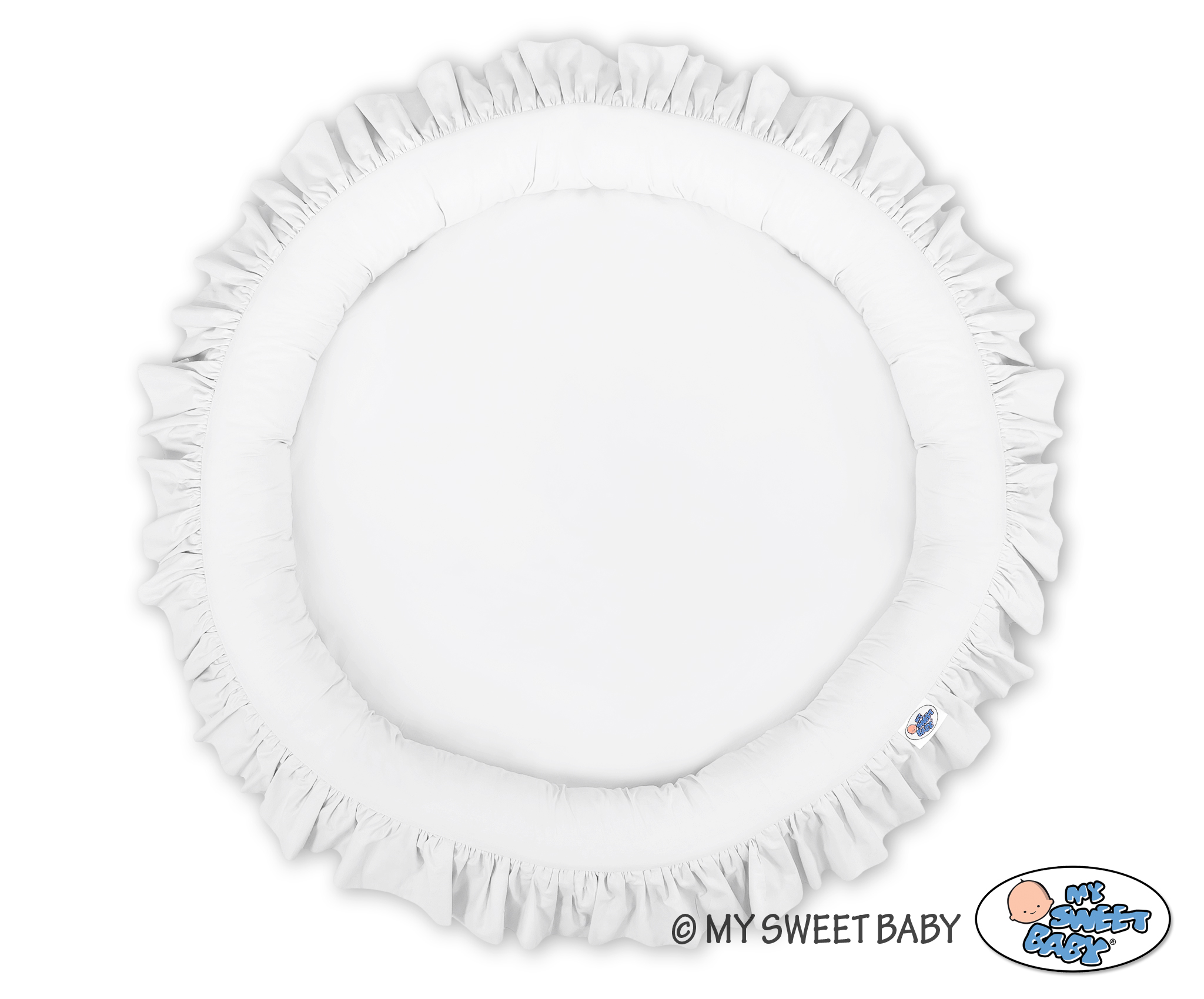 Der Betthimmel in Kombination mit weichen, bequemen Nestchen mit Rüsche schafft einen perfekten Plaz zum spielen. Die weichen Nestchenränder bieten Sicherheit für Kleinkinder. Der Bezug ist aus reiner Baumwolle mit Ökotex Zertifikat. Der Rand ist mit Eco Fillbal Gewebe gefüllt. Das Gewebe ist weich, federnd, gleichzeitig voll luftdurchlässig. Der Boden des Rüschennestchens ist mit einem weichen Inlett aus antiallergischem Gewebe ausgestattet. Das Inlett ist rausnehmbar. Der Bezug kann bei 30 Grad gewaschen werden.