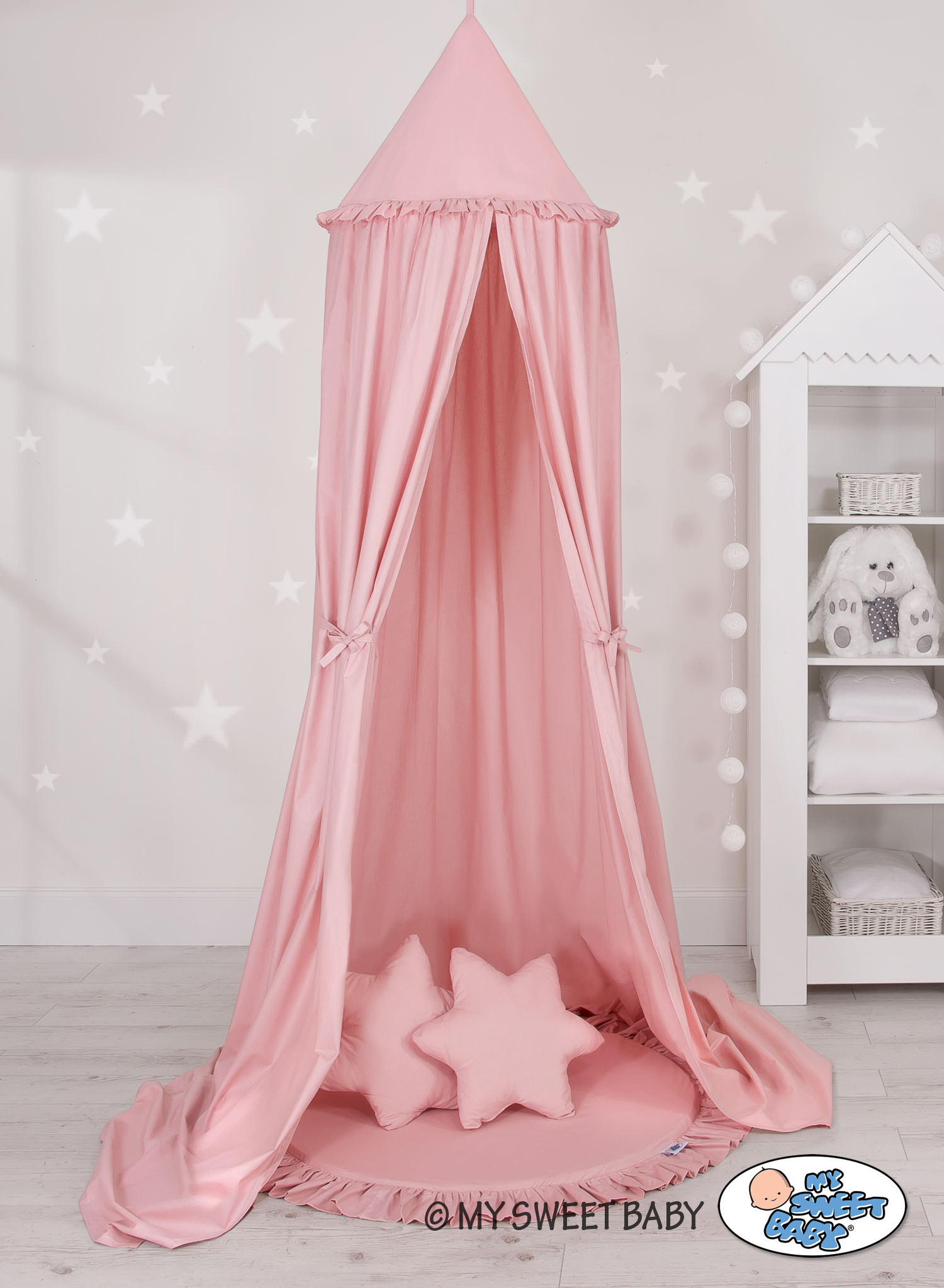 Ein effektvoller Hängehimmel für das Kinderzimmer. Unser Himmel kann als außergewöhnliche Dekoration, oder auch als ein gemütliches Spielplätzchen dienen. Über dem Kinderbett aufgehängt schützt der Himmel vor zu viel Licht und dämmt die Geräusche, so dass ein gemütlicher Ruheplatz entsteht. Der Himmel kann auch separat leicht an die Decke angebracht werden. Die Länge von 260 cm erlaubt die Enden am Boden zu drapieren. Somit entsteht ein Versteck und Spielplatz für ältere Kinder.
