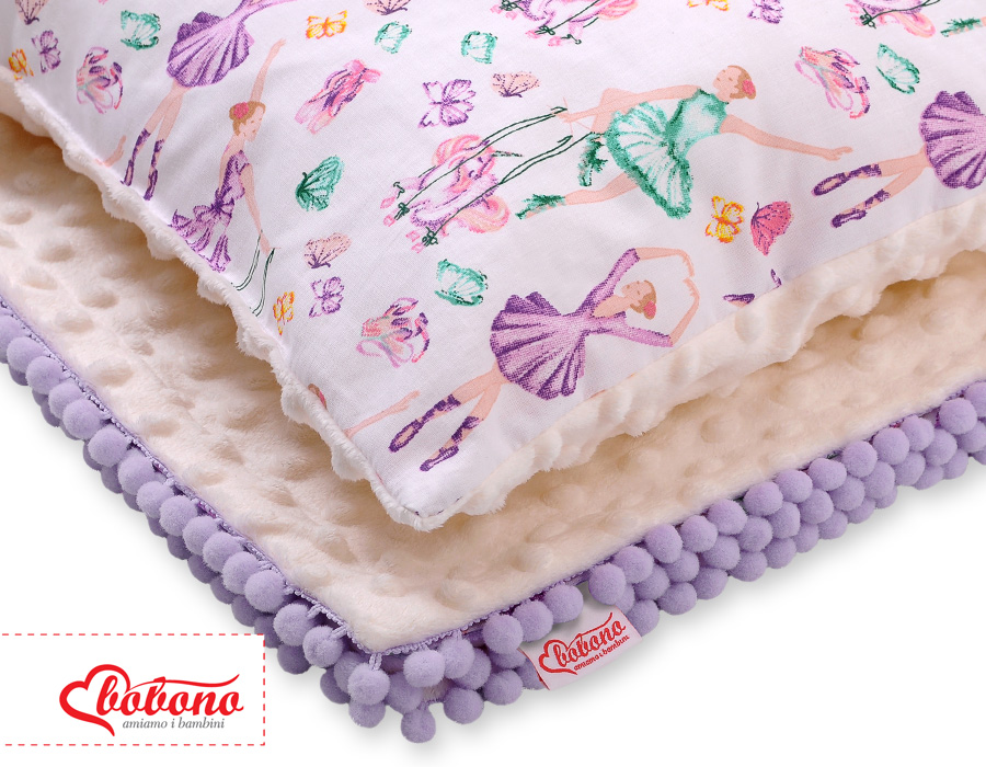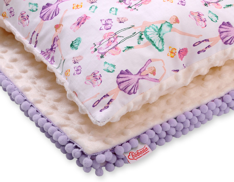 Stubenwagen » Bettwäsche für Babys » Bettwäsche für Babybett FUN & JOY » Wendedecke doppelseitig + Kissen » Set: Wendedecke doppelseitig + Kissen - Ballerinen lila