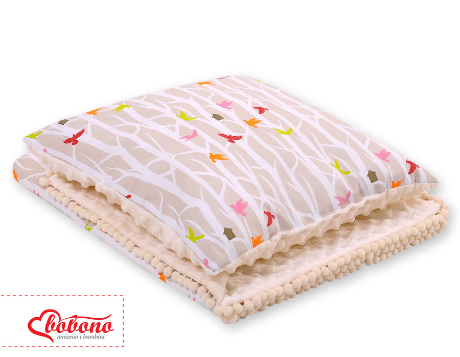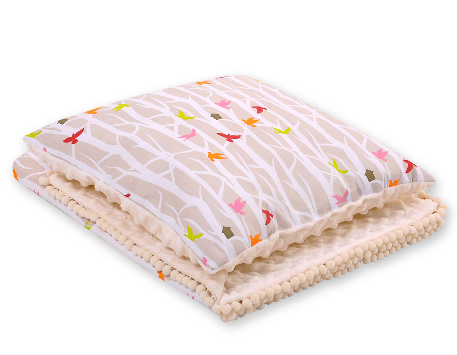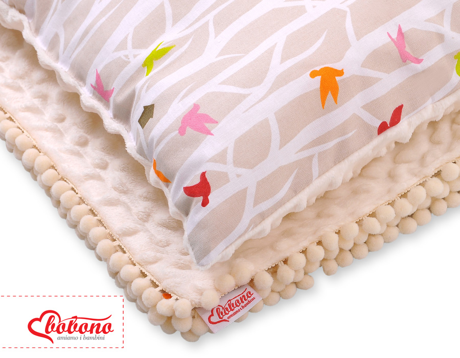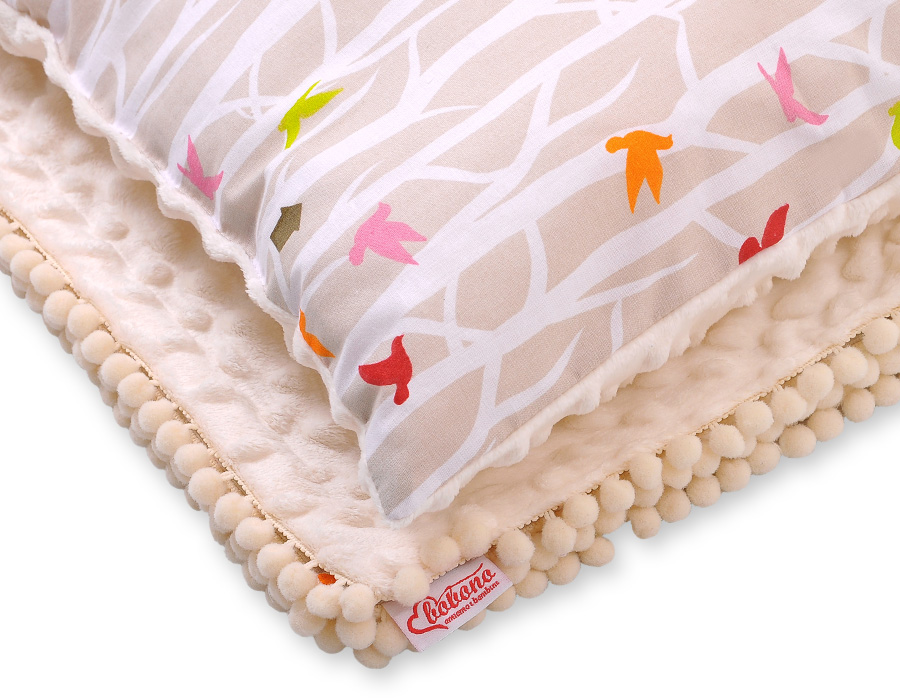 Samtweiches, doppelseitiges Kissen für einen Kinderwagen oder Kinderbett. Aus weichem Plüsch Stoff (minky) und bunte 100% Baumwolle.