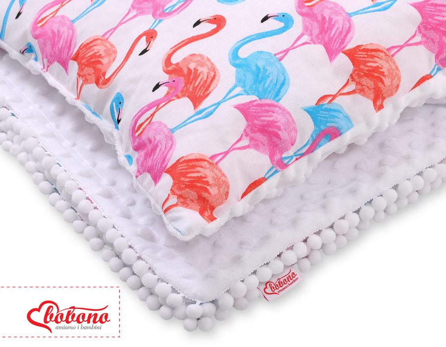 Stubenwagen » Bettwäsche für Babys » Bettwäsche für Babybett FUN & JOY » Wendedecke doppelseitig + Kissen » Set: Wendedecke doppelseitig + Kissen - Flamingo