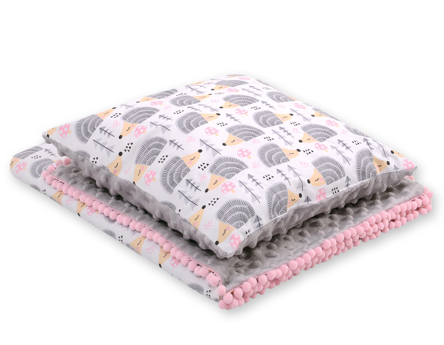 Set: Wendedecke doppelseitig + Kissen -  Igel grau