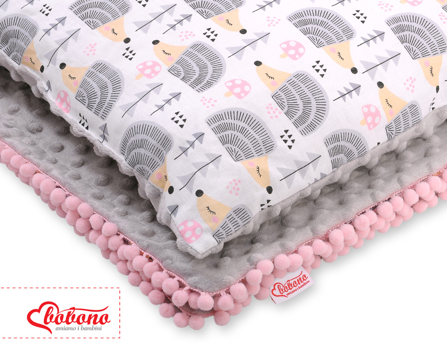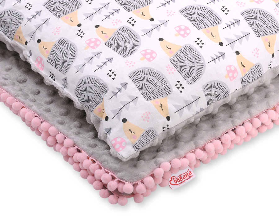 Stubenwagen » Bettwäsche für Babys » Bettwäsche für Babybett FUN & JOY » Wendedecke doppelseitig + Kissen » Set: Wendedecke doppelseitig + Kissen - Igel grau