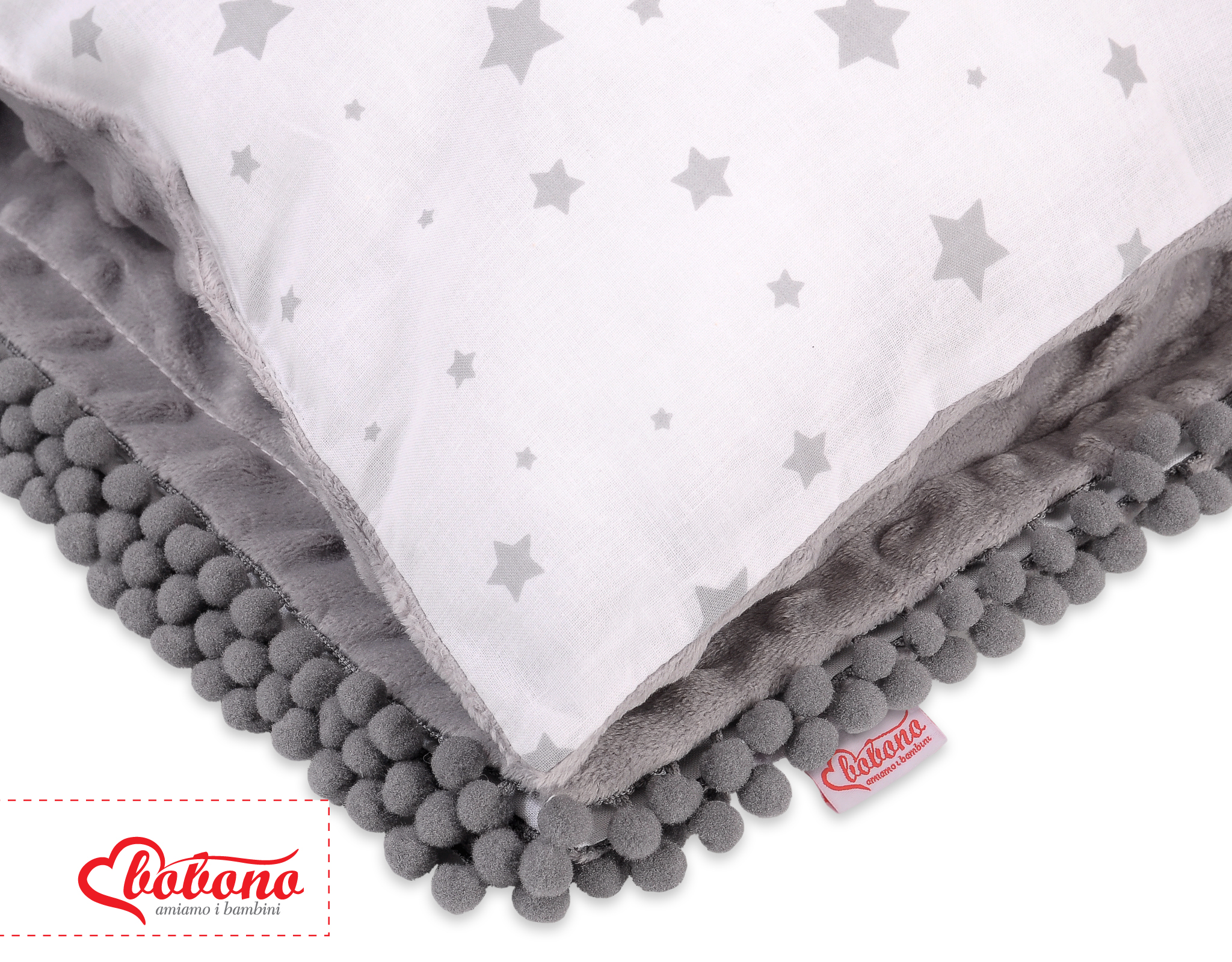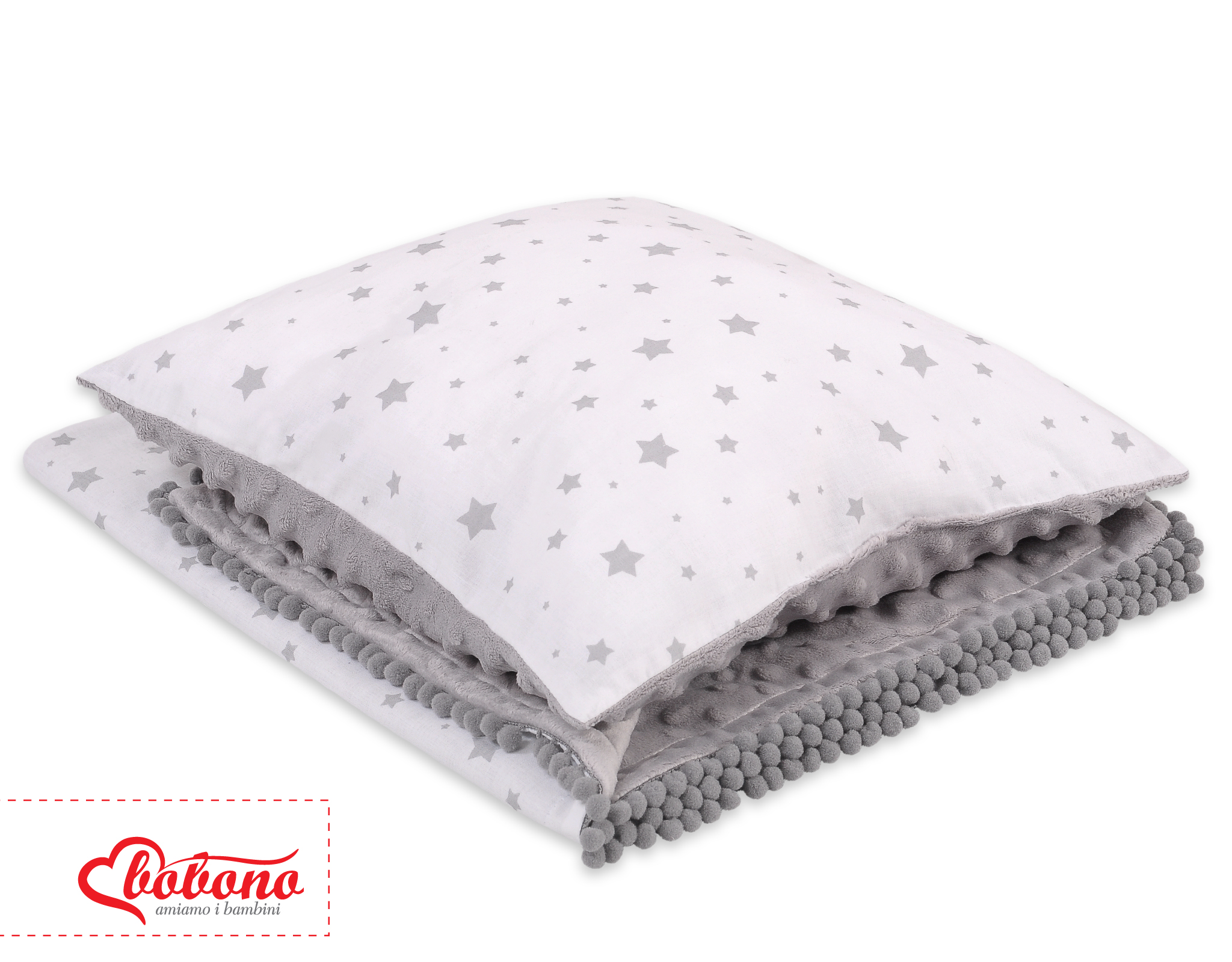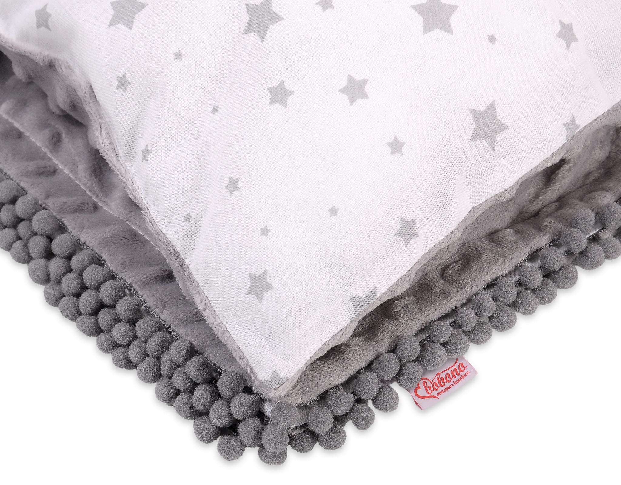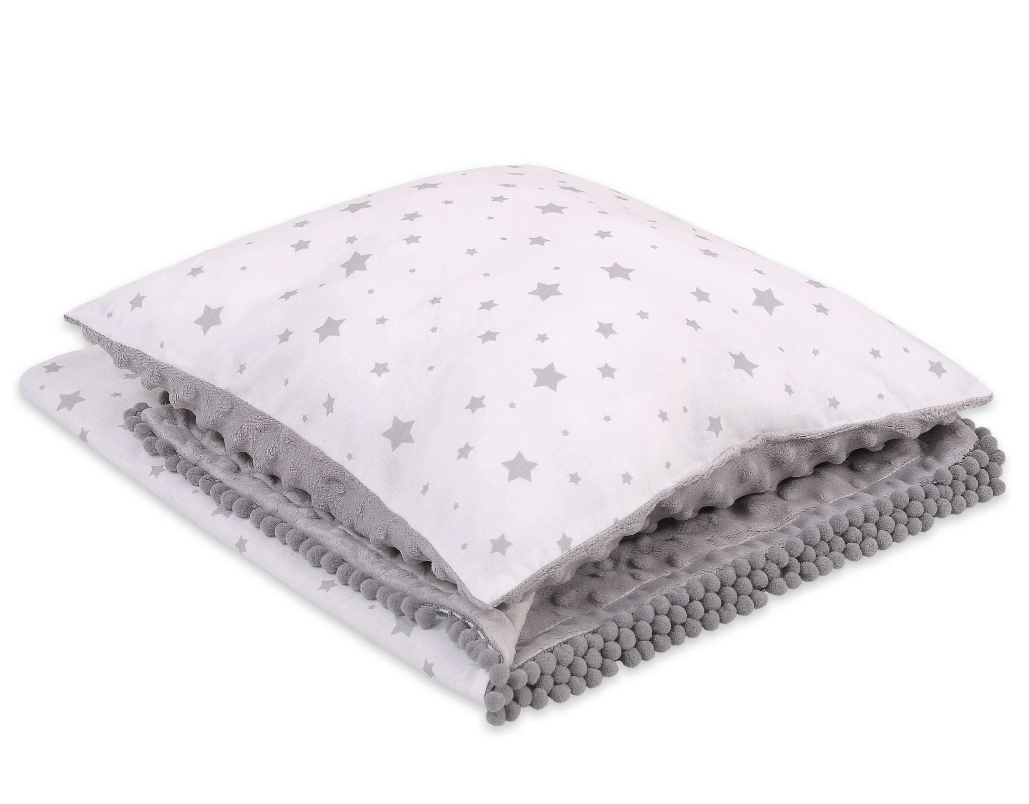 Set: Wendedecke doppelseitig + Kissen - Mini Sternchen grau