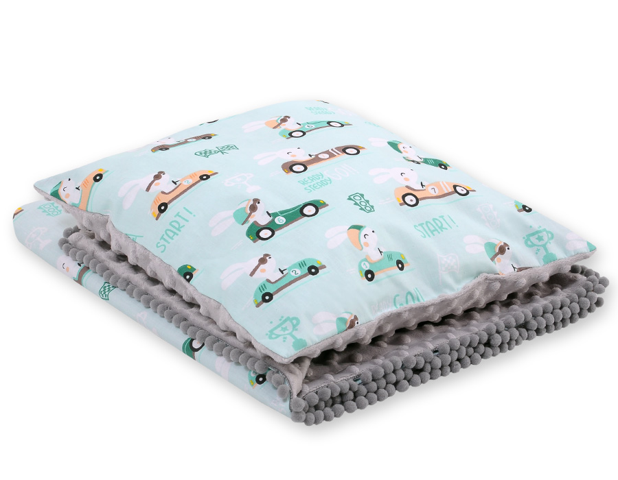 Set: Wendedecke doppelseitig + Kissen - minze Hasen
