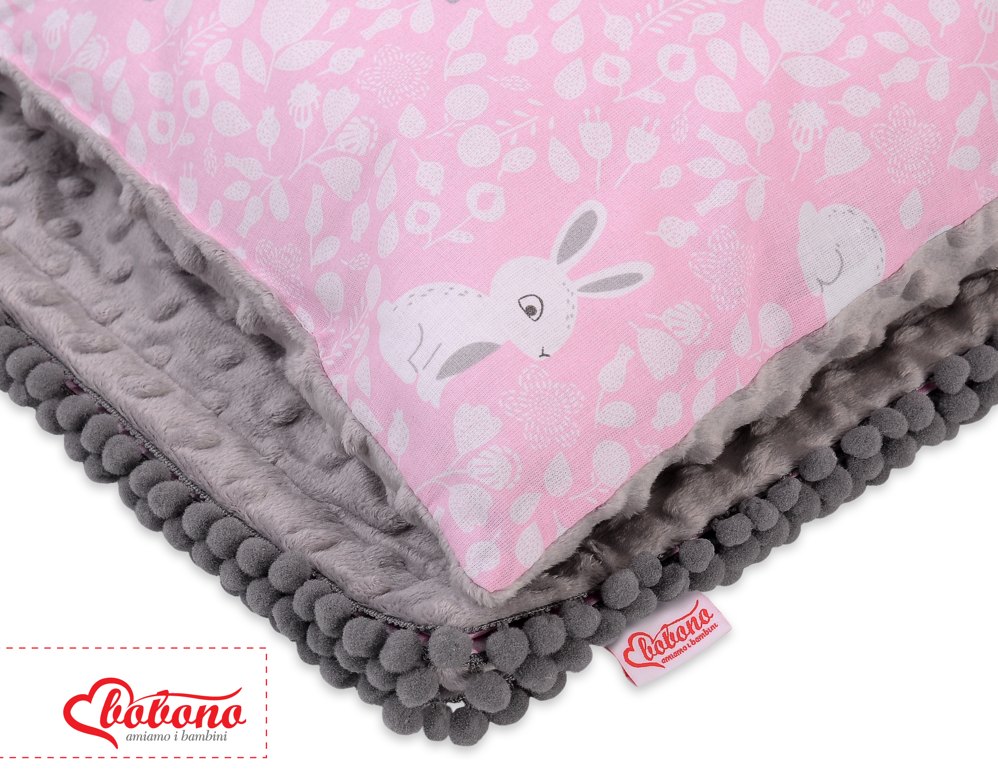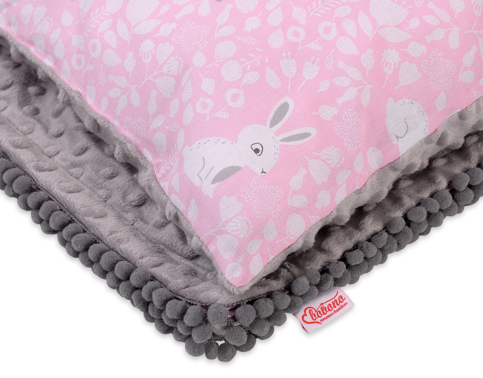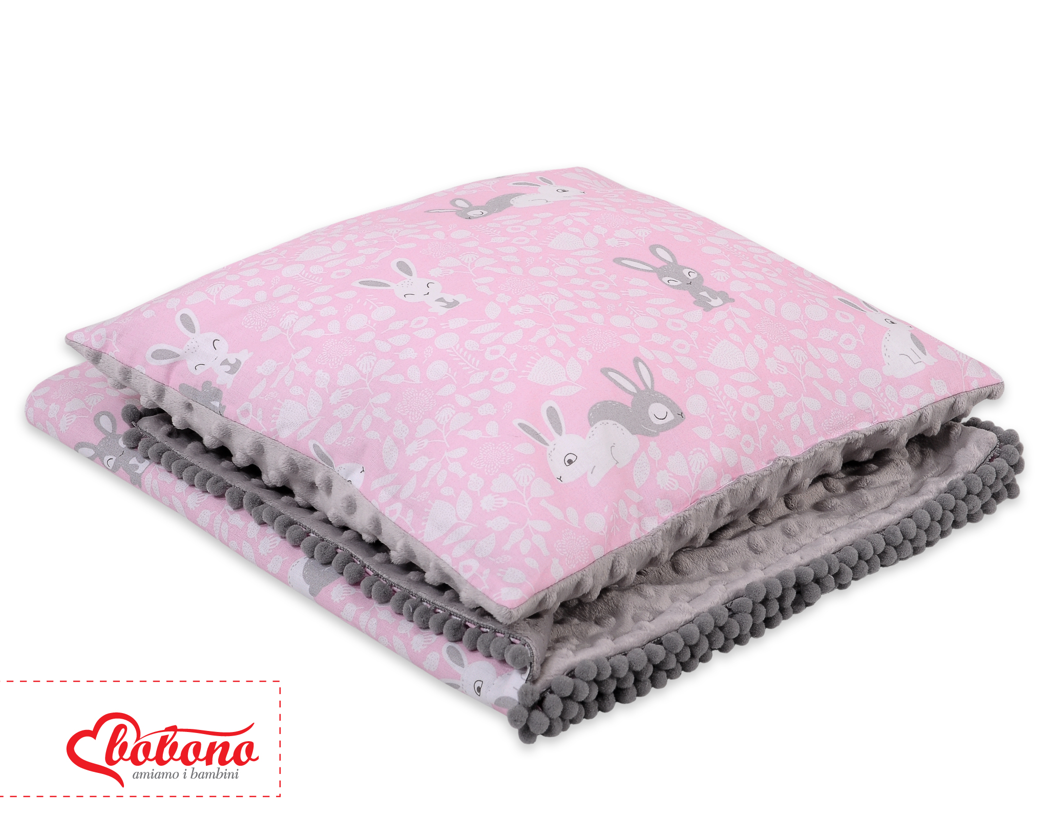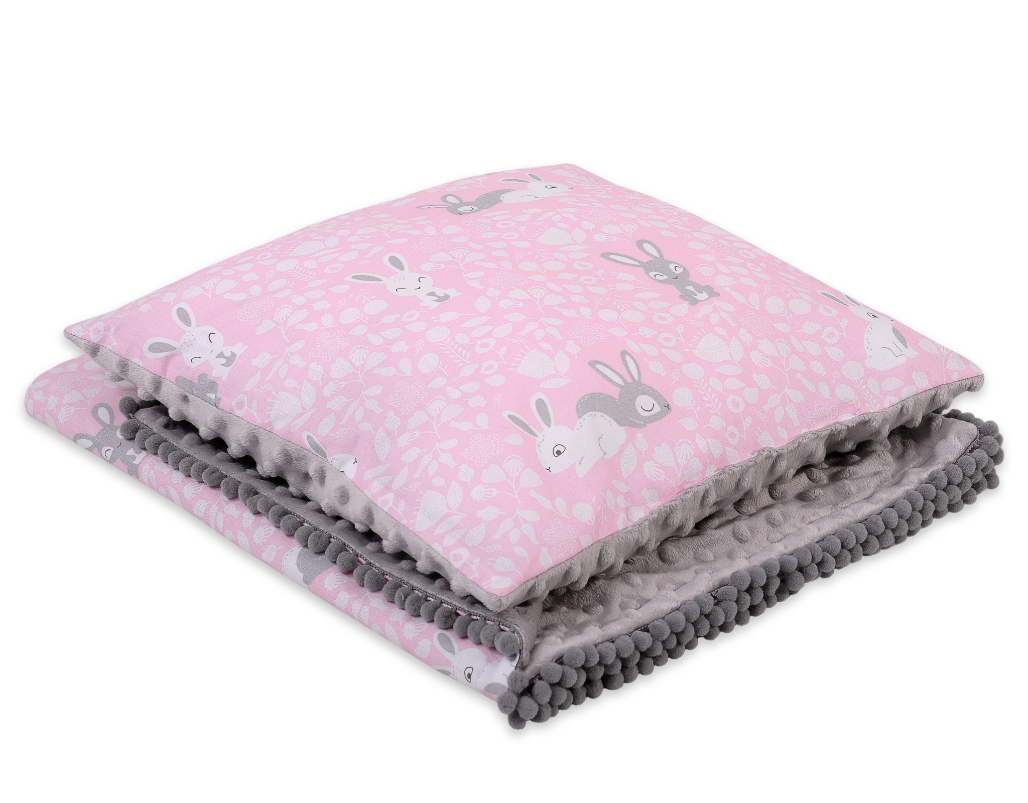 Set: Wendedecke doppelseitig + Kissen - rosa Hasen