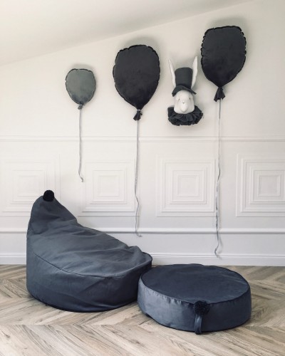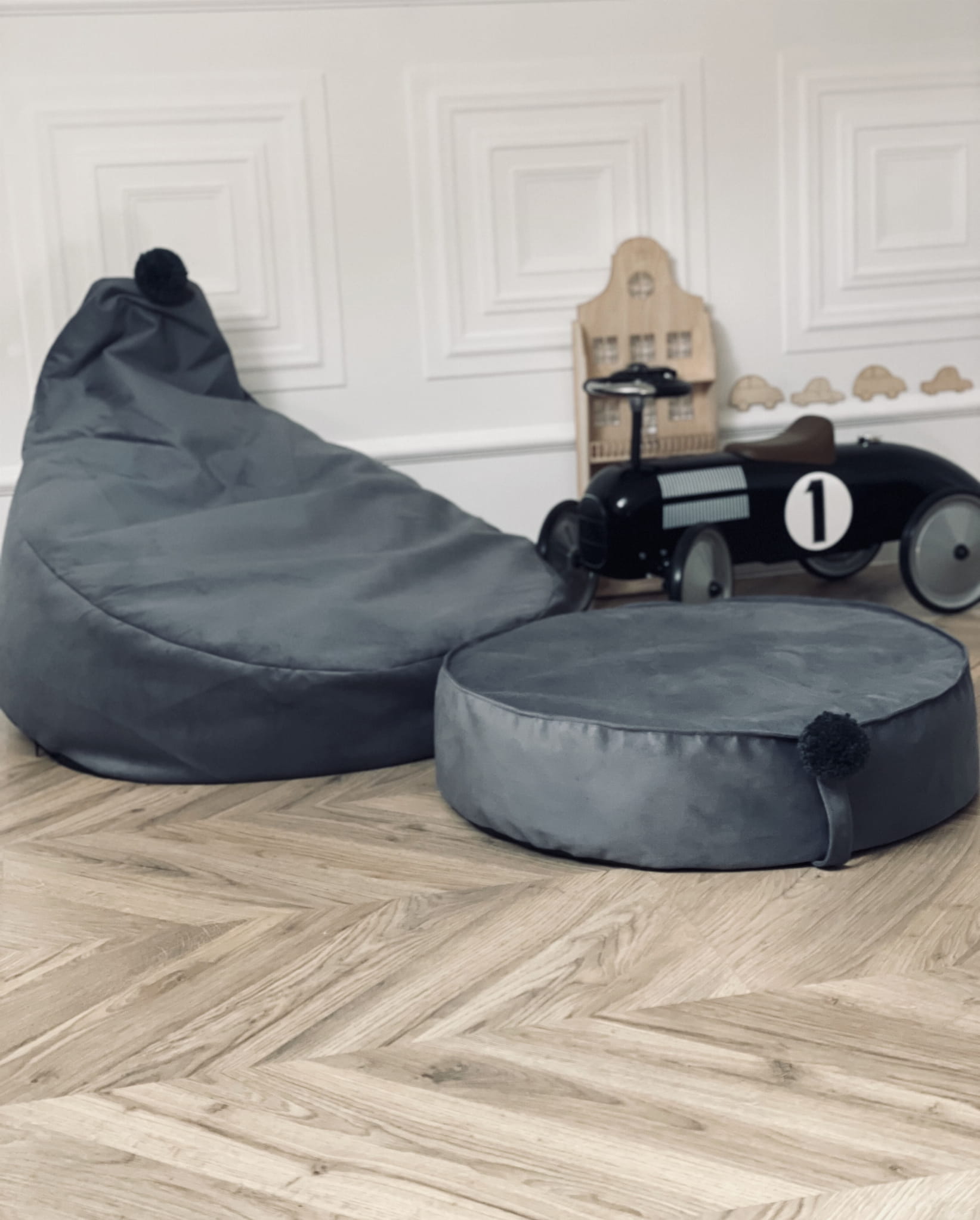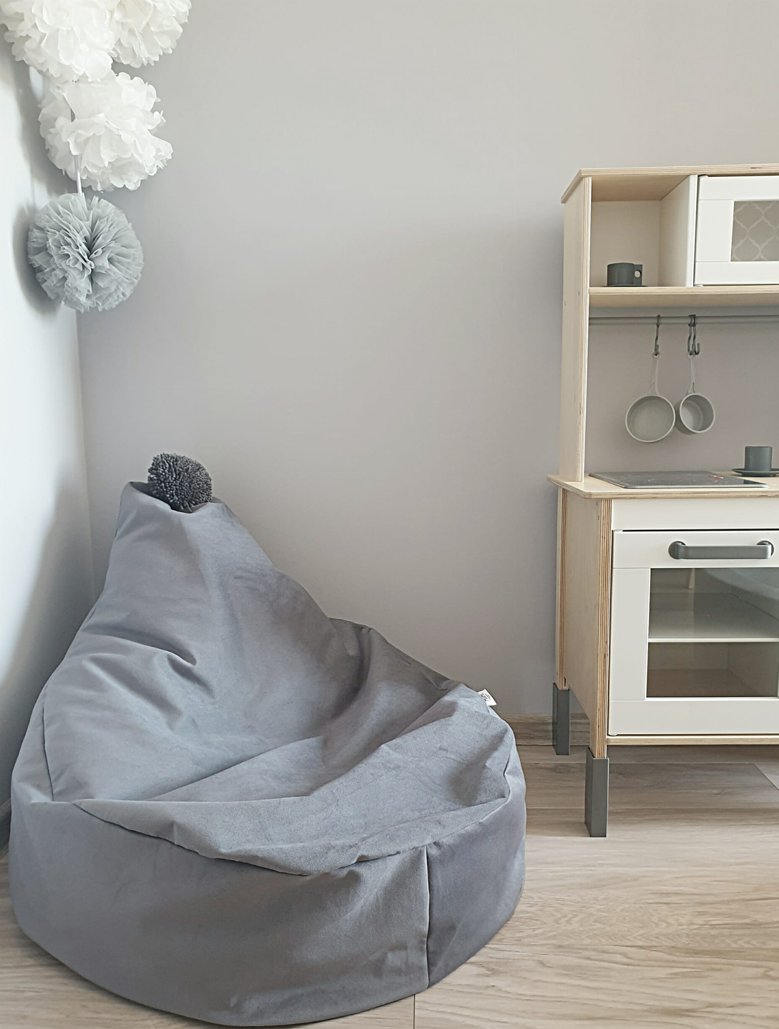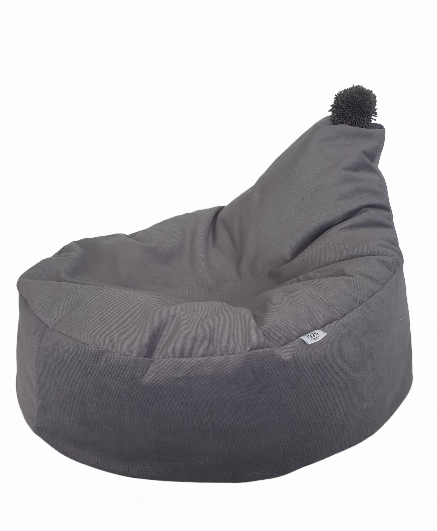 Zusätzlich hat der Sitzsack eine fest angebrachte Wollpompon.