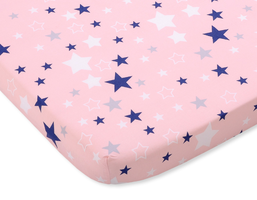 Spannbettlaken aus Baumwolle 120x60cm rosa-blaue Sternen Spanbettlacken aus Baumwolle für eine 120x60 cm Matratze.