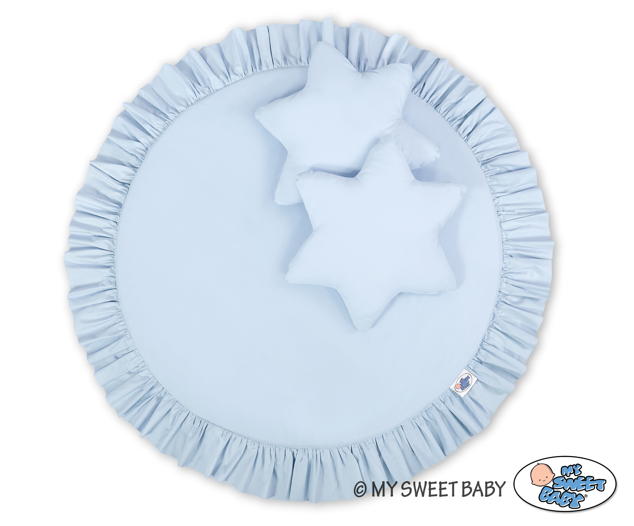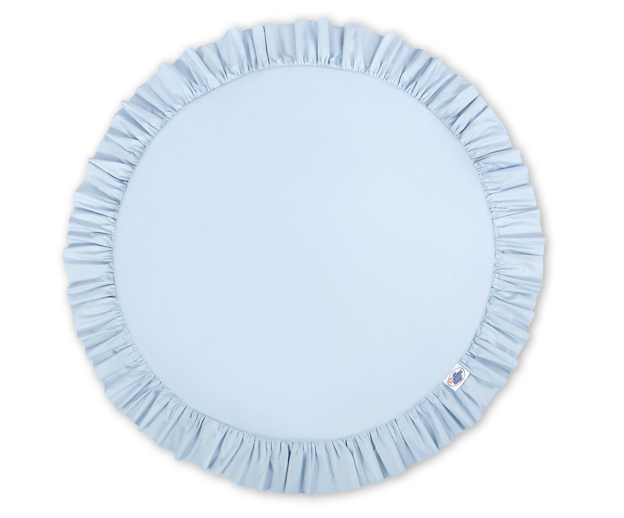 Eine Spielmatte mit Rüsche. Sie kann als Teppich/Bettvorlage, Matte oder auch als Boden für den langen Himmel verwendet werden. Von den ersten Lebenstagen kann das Baby auf Matte auf dem Bauch liegen und die Welt entdecken. Der Boden der Matte ist mit einem weichen Inlett aus antiallergischem Gewebe ausgestattet. Die Bodeneinlage schützt vor Kälte und ist angenehm weich. Die Einlage kann aus der Spielmatte herausgenommen werden und der Bezug gewaschen werden. Der Bezug ist aus reiner Baumwolle mit Ökotex Zertifikat hergestellt.