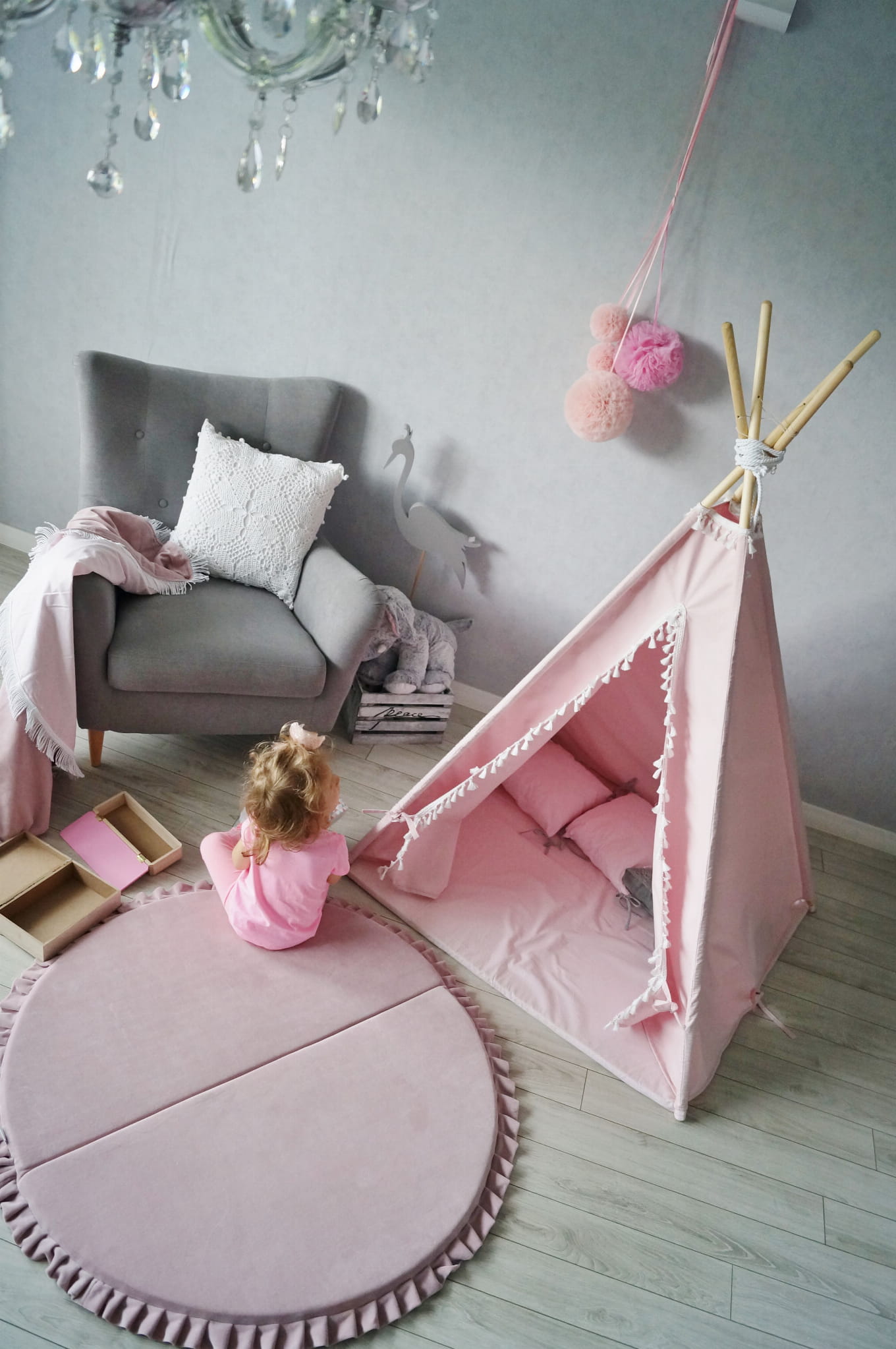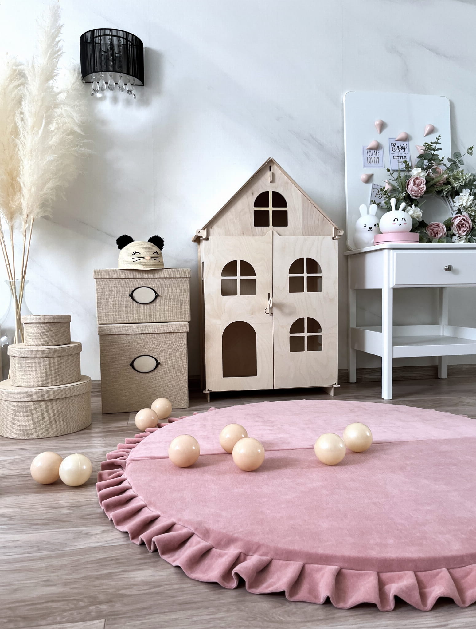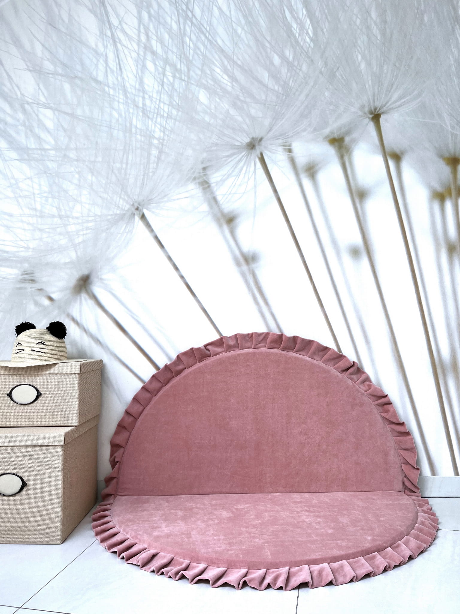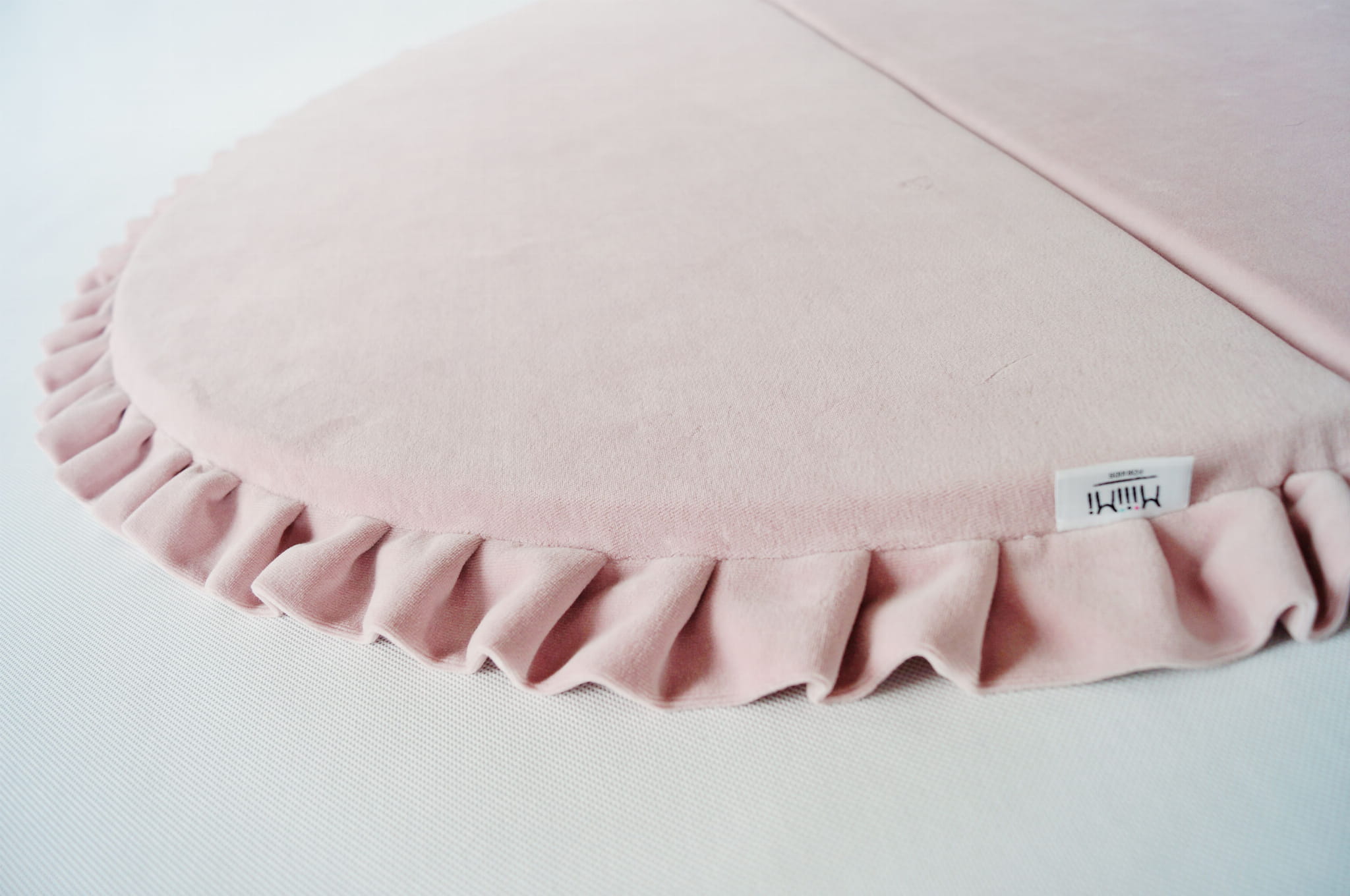 Suchen Sie nach der perfekten Spielmatte zum Toben, Spielen, Krabbeln und Entspannen? Voilà! Diese vielseitige, weiche Schaumstoffmatte wird all Ihren Bedürfnissen gerecht. Mit Leichtigkeit können Sie sie an die Wand klappen und in ein bequemes Sofakissen verwandeln, ideal für die kuschelige Ecke. Die schicken Rüschen und der elegante Samtbezug sind absolut im Trend und machen sie zu einem wahren Schmuckstück im Kinderzimmer.