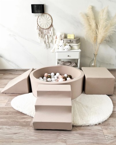 Spielplatz mit rund Bällebad mit 200 BällenSpielplatz aus Schaumstoff mit Bällebad BeigeIndoor Spielplatz aus Schaumstoff mit Bällebad für KinderzimmerSpielplatz mit rund Bällebad + 200 Bällen - Beige Schaumspielset