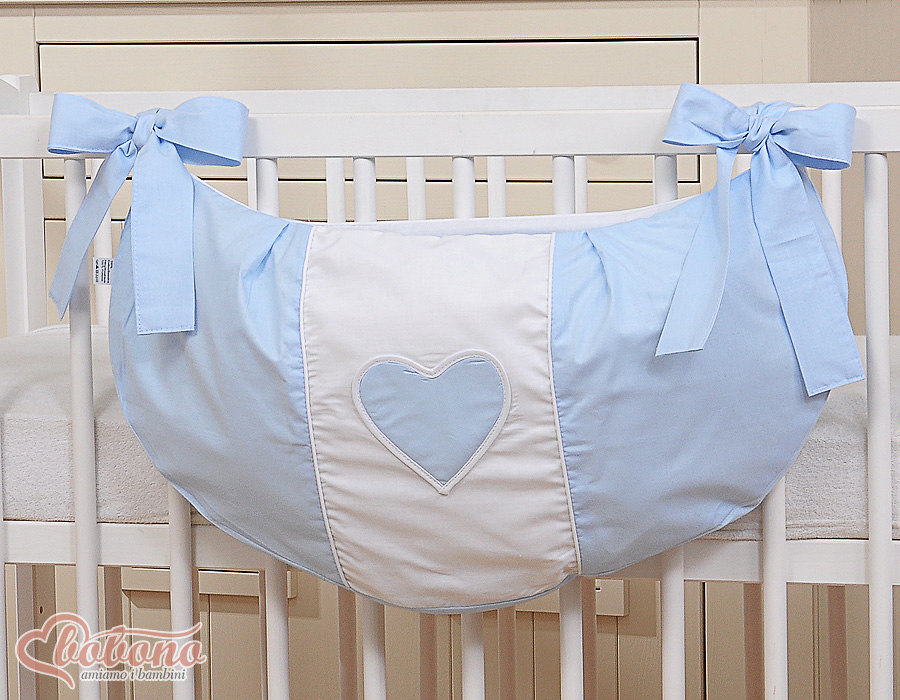 Spielzeugtasche für Babybett - Hängende Herzen blau Wunderbare, grosse Tasche für Spielzeug, Zeitschriften und aller Hand andern Dingen im Leben mit Kindern. Wirkt auch sehr dekorativ im Kinderraum.