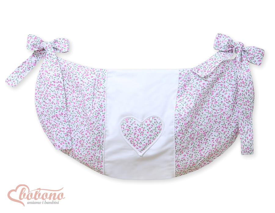Spielzeugtasche für Babybett - Hängende Herzen rosa Blümchen Wunderbare, grosse Tasche für Spielzeug, Zeitschriften und aller Hand andern Dingen im Leben mit Kindern. Wirkt auch sehr dekorativ im Kinderraum.