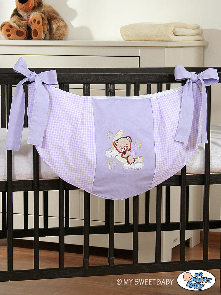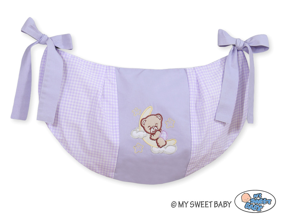 - dwie duże kokardy pozwalają łatwo przywiązać torbę do każdego rodzaju łóżeczka, stanowią także piękną ozdobę.