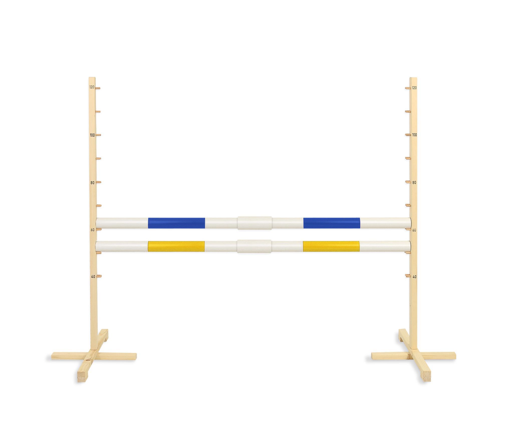 Das Hindernis ist haltbar und sicher, aus perfekt geschliffenem Kiefernholz gefertigt, damit sich das Kind beim Springen oder Bewegen des Ständers nicht verletzt. Das Hindernis hat stabile Füße, um sicher zu stehen. Die Stäbe sind aus Kunststoff, leicht und in mehreren Farbvarianten erhältlich.