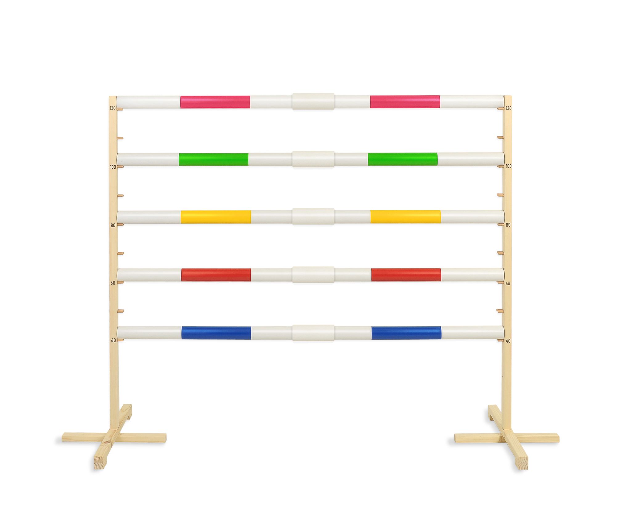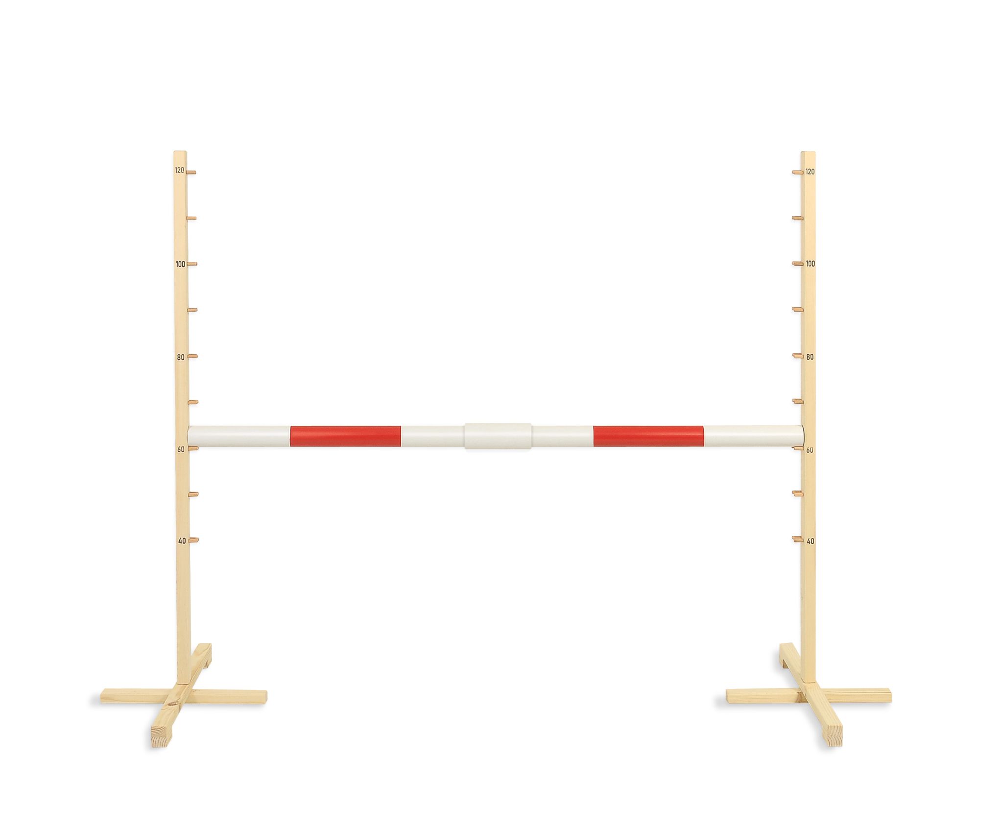 Das Hindernis ist haltbar und sicher, aus perfekt geschliffenem Kiefernholz gefertigt, damit sich das Kind beim Springen oder Bewegen des Ständers nicht verletzt. Das Hindernis hat stabile Füße, um sicher zu stehen. Die Stäbe sind aus Kunststoff, leicht und in mehreren Farbvarianten erhältlich.