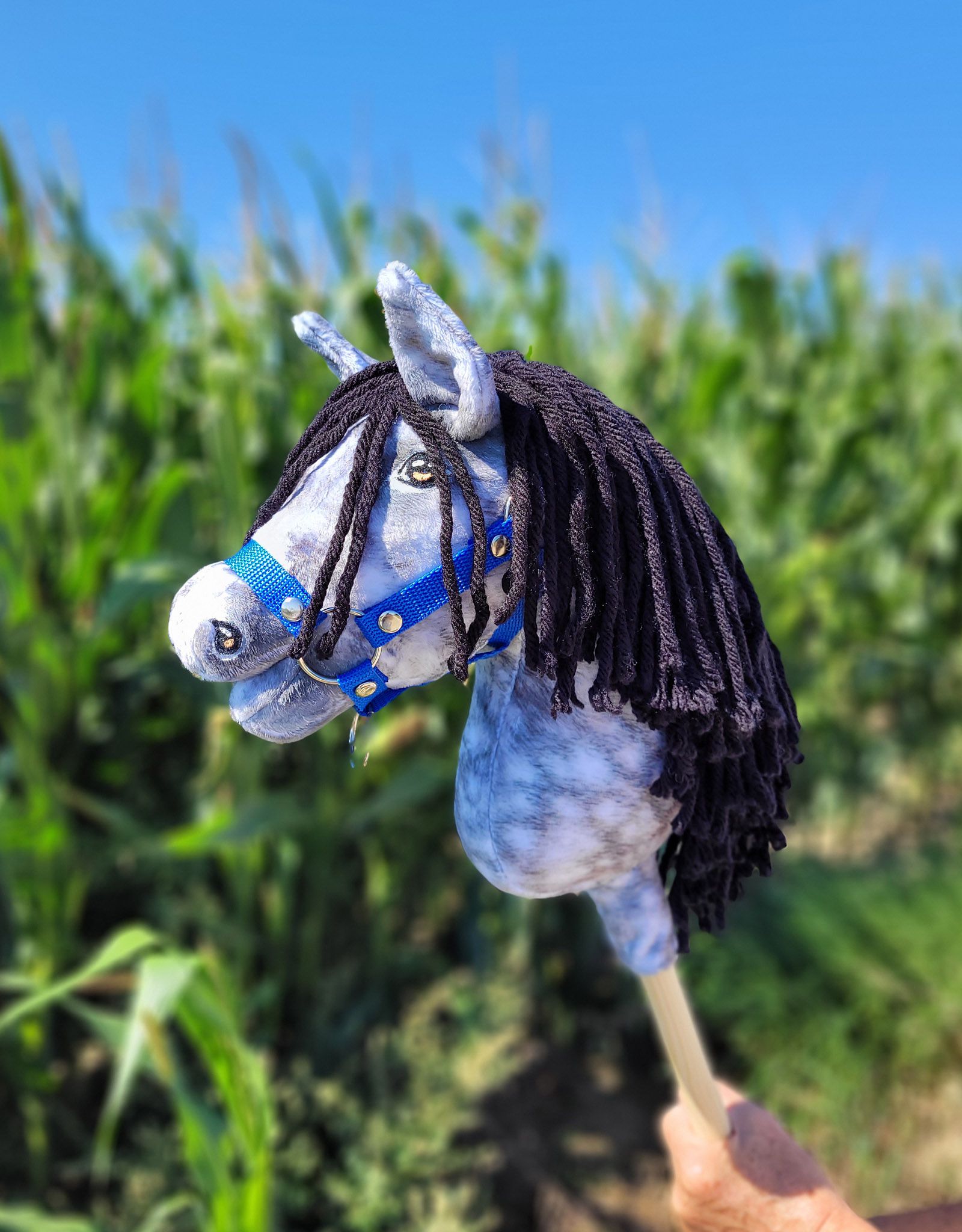 Stubenwagen » Spielzeug Kuscheltiere » Hobby Horse - Steckenpferde und Zubehör » Steckenpferde für Hobby Horsing » Steckenpferd - Apfelschimmel Pferd mit schwarzer Mähne A4