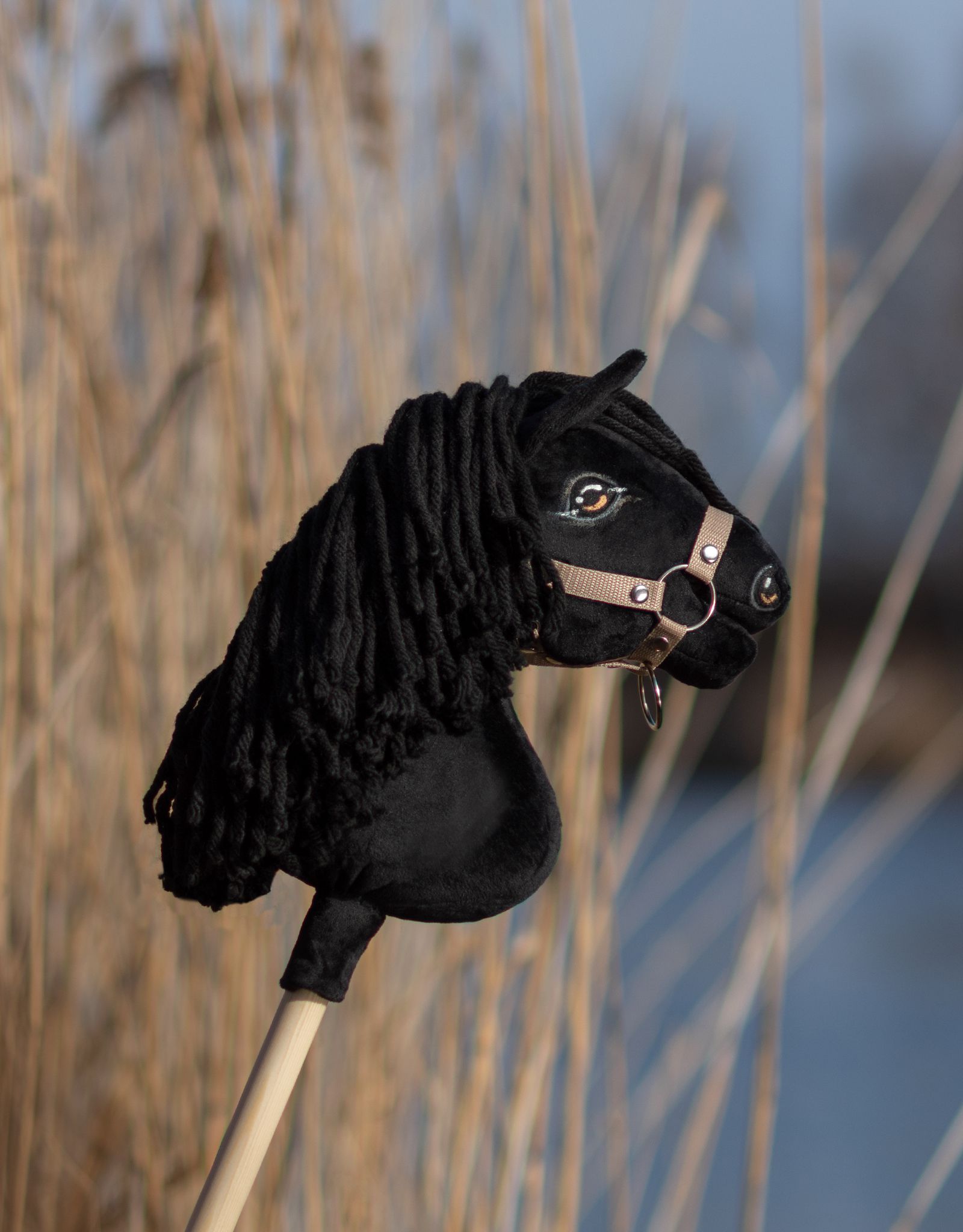 Steckenpferd - großer Spaß und Aktivität für Kinder zu Hause und im Freien. Ein Pferd auf einem Stock ist für diese lustige Aktivität unerlässlich. Unser Steckenpferd wird mit viel Liebe zum Detail von Hand gefertigt. Wir verwenden Rohstoffe von höchster Qualität, die nach dem Oko-Tex-Standard zertifiziert sind - die gleichen, die wir auch für unsere anderen Kinderprodukte verwenden. Für großen und sicheren Spaß! Kleines Super Steckenpferd - Format A4. Realistisch, handgenäht, handbemalt und schattiert. Jedes Steckenpferd ist ein Unikat. Sorgfältig geformt, um einem echten Pferd so weit wie möglich zu entsprechen. Sehr stabil - verdreht sich nicht und bewegt sich nicht. Im Inneren eine spezielle stabile Konstruktion, leicht, aber kräftig, um das Pferd stabil und haltbar zu machen. Das Super Hobby Horse ist aus weichem, geschmeidigem Minky in schönen Naturtönen gefertigt. Das Material ist dick und sehr haltbar. Die weiche Mähne lässt sich wie bei einem echten Pferd streicheln und sind ideal zum Kuscheln und sanften Bürsten geeignet. Die Mähne des Pferdes ist dick, fest angenäht und zusätzlich befestigt. Hergestellt aus hochwertigem Woll- und Acrylgarn. Die Ohren des Pferdes sind zusätzlich versteift. Augen und Nasenlöcher aus schwarzem Filz, sorgfältig aufgenäht. Von Hand gemalt und schattiert. Die Füllung des Pferdes ist eine spezielle zertifizierte Faser - ECO FILLBALL. Die Füllung ist antiallergisch und hat das Zertifikat Öko-Tex Standard 100 - das bedeutet, dass die Materialien auch für den direkten Kontakt mit der Haut eines Neugeborenen zugelassen sind. Die Stange, auf die das Pferd montiert wird, ist aus erstklassigem, glattem, natürlichem Buchenholz gefertigt. Die Befestigung ist zusätzlich mit Minky maskiert, damit das ganze Pferd besonders aussieht. Die Stangenlänge ist ideal für das Dressage Springen über Hindernisse geeignet.