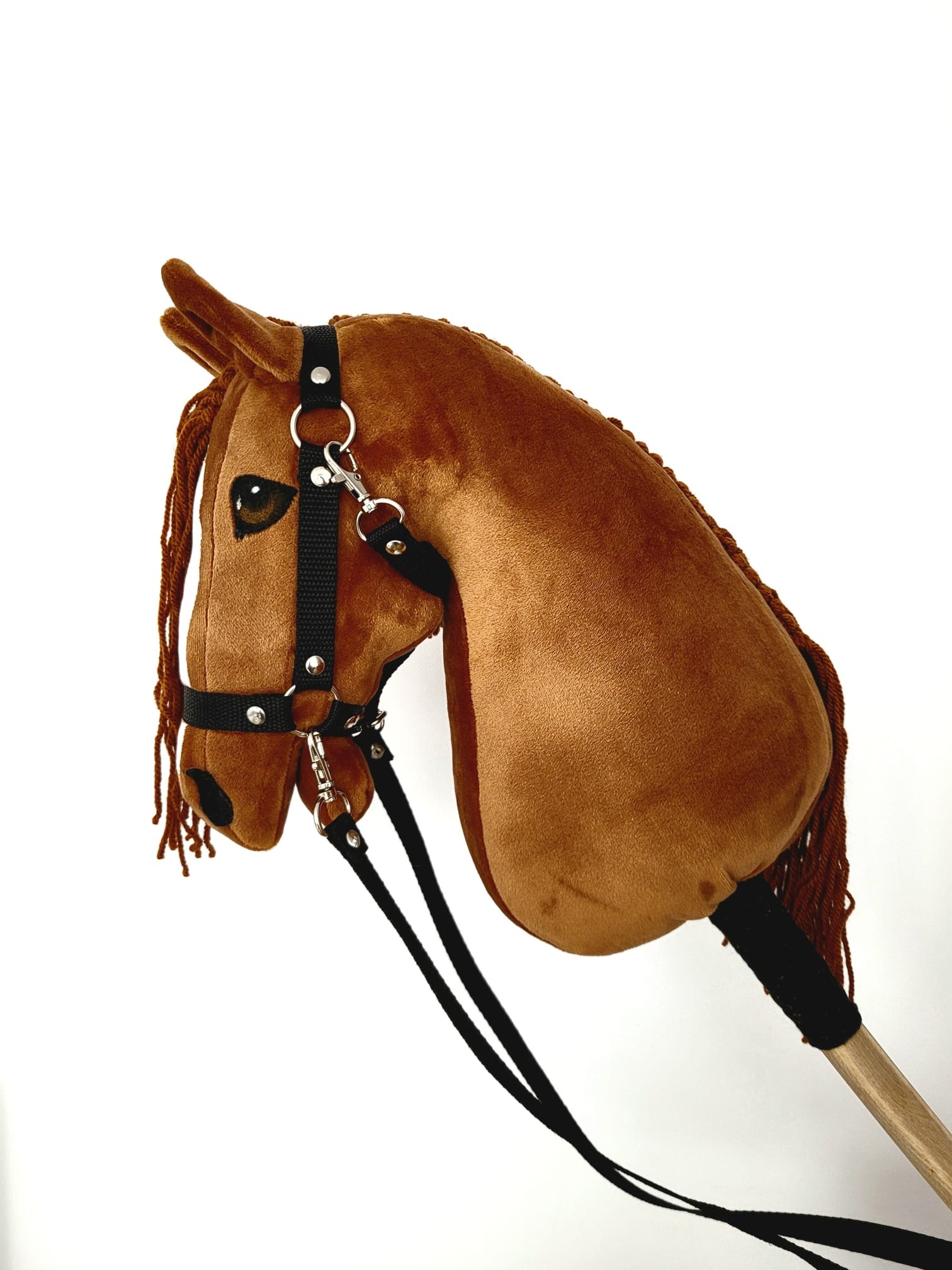 Steckenpferd Kastanie Braun Superschneller - Hobby Horse mit Halfter und Zügel - Schwarz