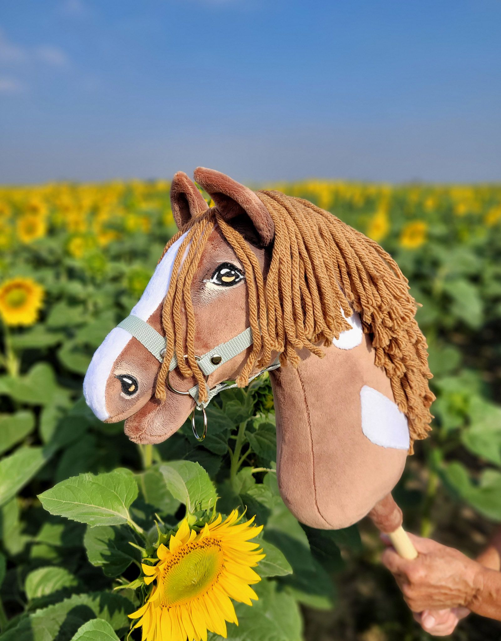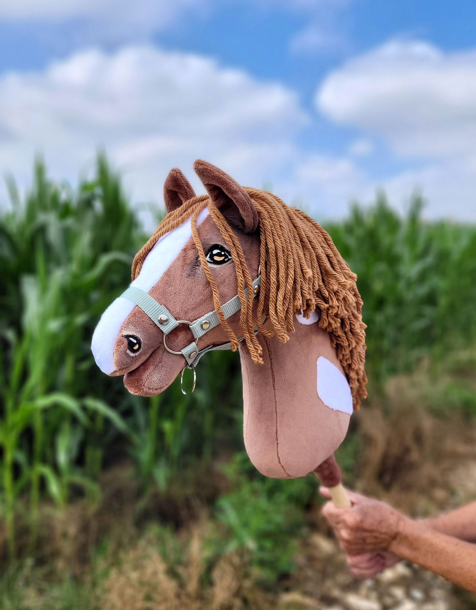 Das große Super Steckenpferd im Format A3 ist realistisch gestaltet, handgenäht, handbemalt und schattiert. Jedes Steckenpferd ist ein Unikat und wird sorgfältig geformt, um einem echten Pferd so nah wie möglich zu kommen. Das Steckenpferd Western Braun mit brauner Mähne ist sehr stabil, verdreht sich nicht und bewegt sich nicht, dank einer speziellen stabilen Konstruktion im Inneren, die das Pferd leicht und dennoch robust macht.