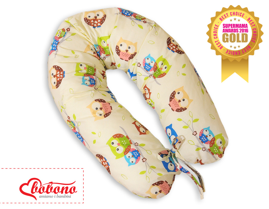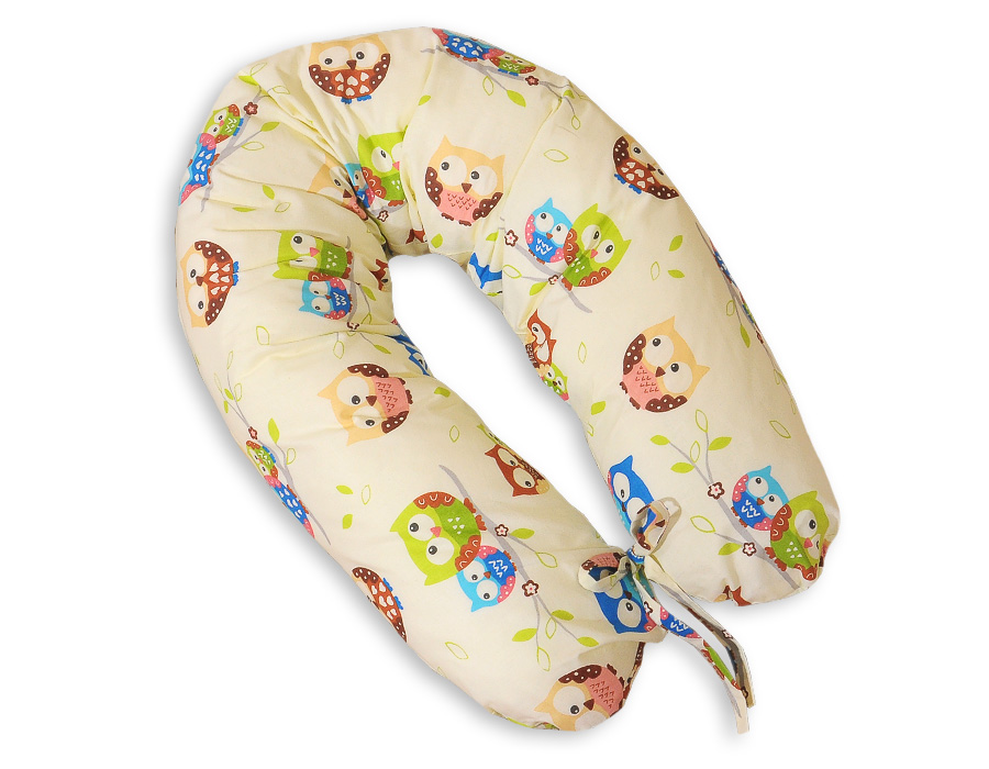 Stubenwagen » Bettwäsche für Babys » Bettwäsche für Babybett BASIC » Stillkissen - Longer » Still - und Entspannungskissen - Eulen auf creme