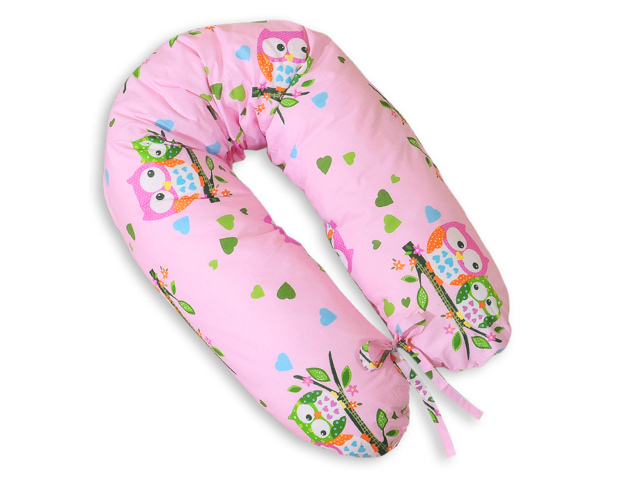 Stubenwagen » Bettwäsche für Babys » Bettwäsche für Babybett BASIC » Stillkissen - Longer » Still - und Entspannungskissen - Eulen auf Rosa