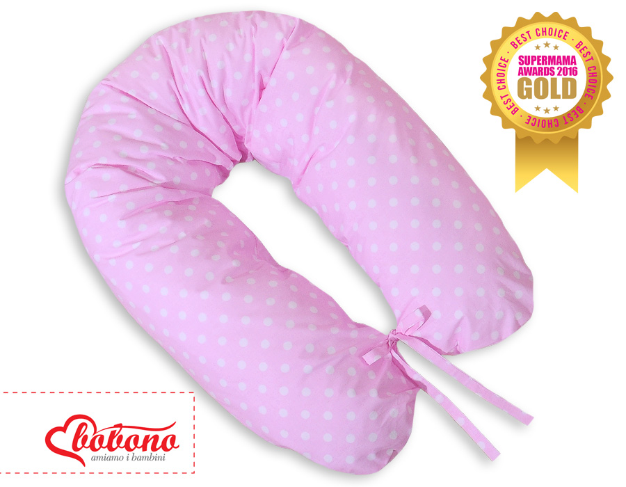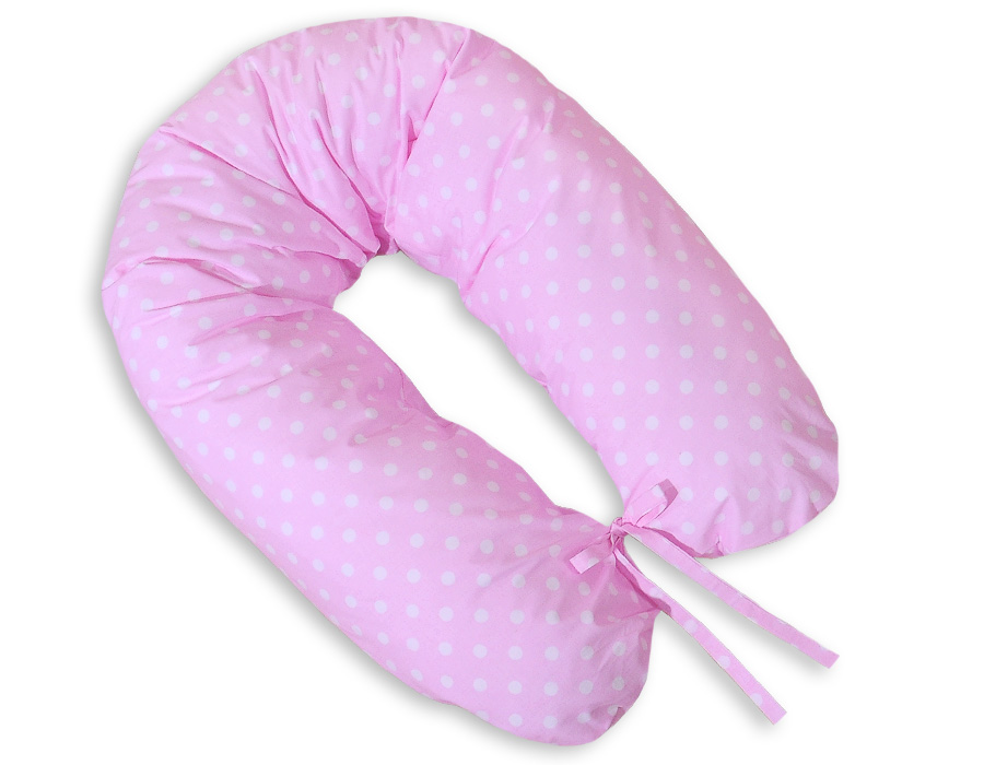 Stubenwagen » Bettwäsche für Babys » Bettwäsche für Babybett BASIC » Stillkissen - Longer » Still - und Entspannungskissen - Rosa mit weißen Punktemuster