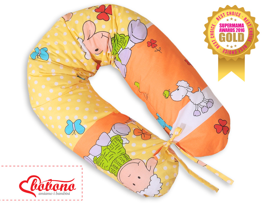 Stubenwagen » Bettwäsche für Babys » Bettwäsche für Babybett BASIC » Stillkissen - Longer » Still - und Entspannungskissen - Schafe orange-gelb