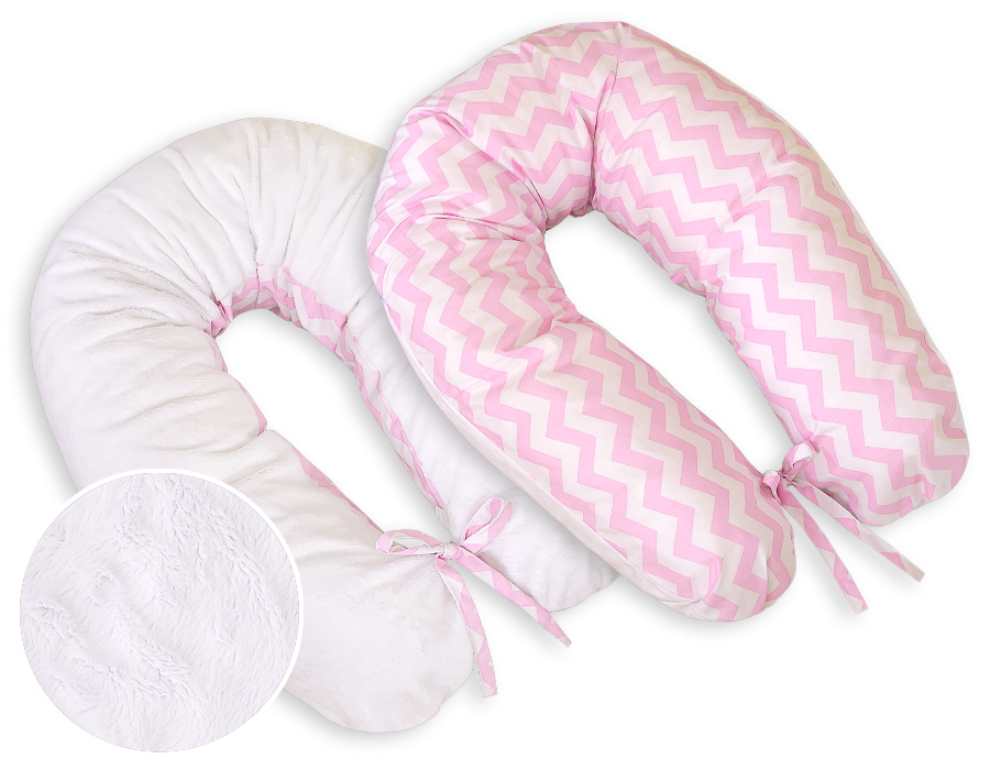 Stubenwagen » Bettwäsche für Babys » Bettwäsche für Babybett SIMPLE » Stillkissen - Longer Minky » Still - und Entspannungskissen - Simple chevron rosa-weiß