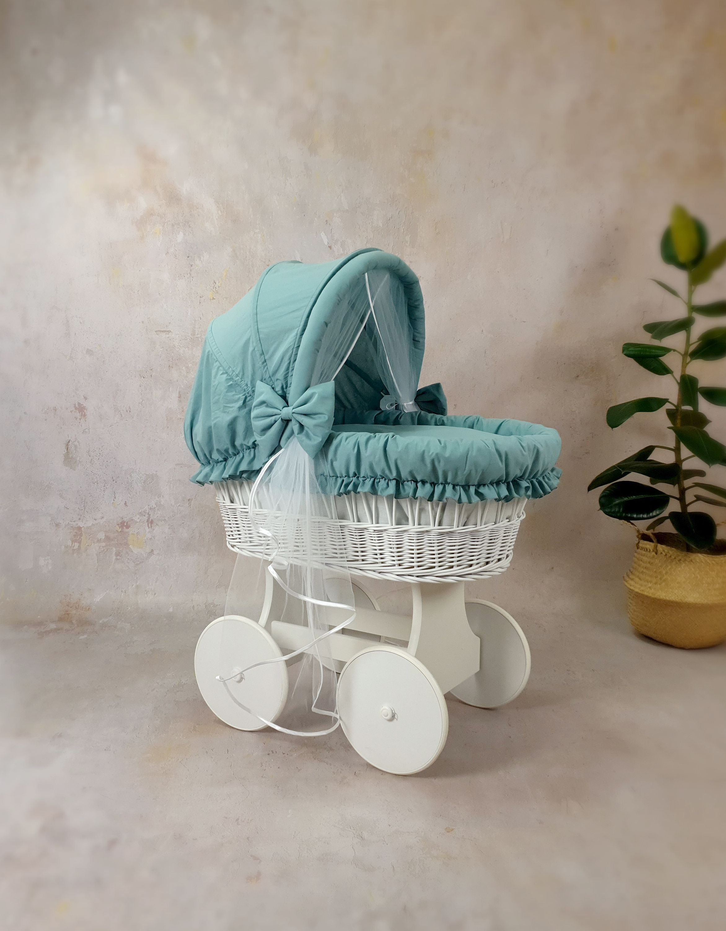Der Stubenwagen ist liebevoll handgeflochten aus hochwertigem polnischem Weidenholz und mit umweltfreundlicher Farbe bemalt, um die Sicherheit Ihres Babys zu gewährleisten. Die Schaumstoffmatratze mit abnehmbarem, waschbarem Bezug sorgt für einen erholsamen Schlaf für Ihr Kind. Die Leichtlaufräder aus Vollholz ermöglichen eine geräuschlose Bewegung auf allen Böden.