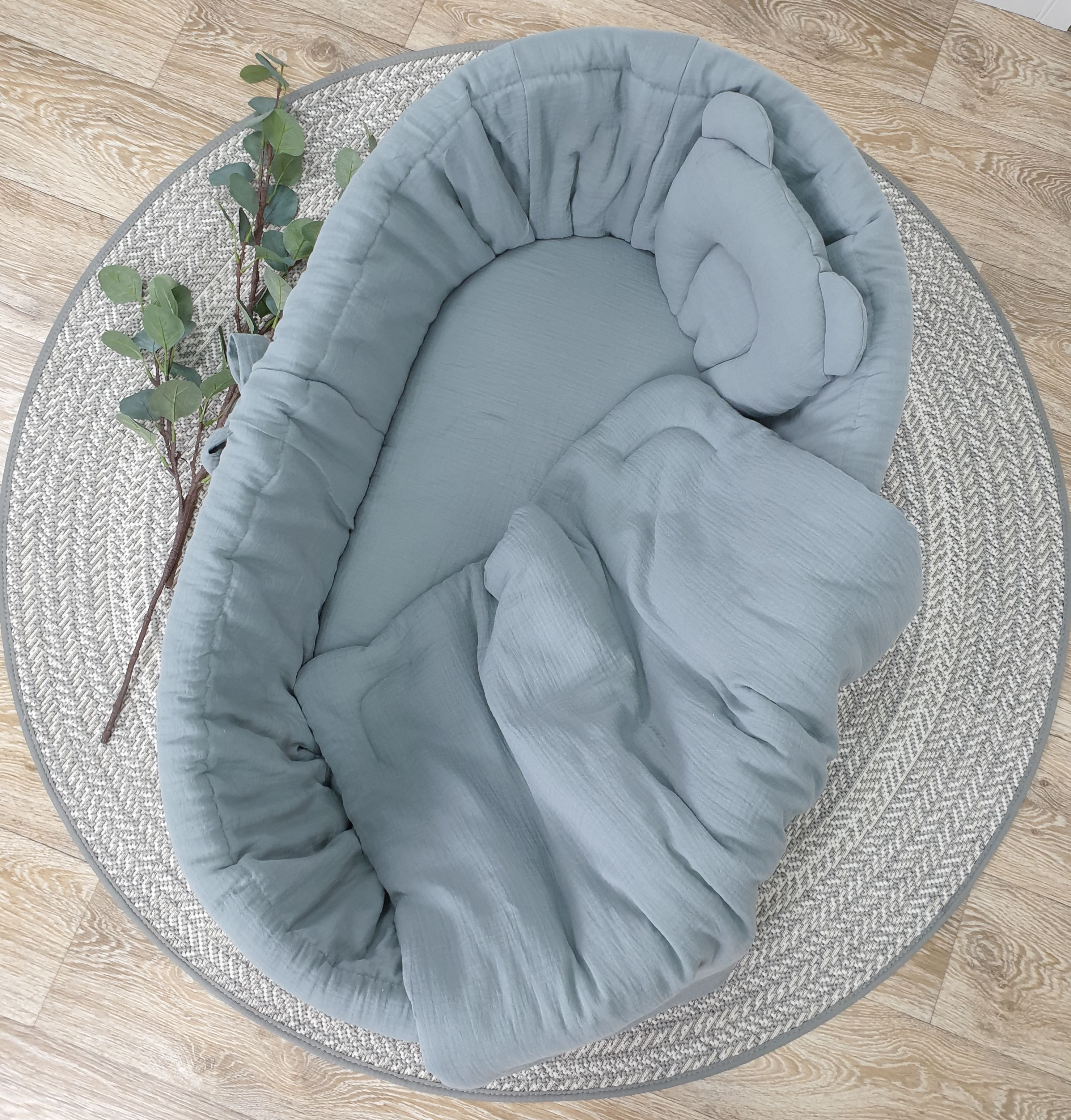 Das Herzstück dieses Sets sind die weichen und atmungsaktiven Textilien aus Musselin – einer zarten, baumwollstoff, die Ihrem Baby höchsten Komfort bietet. Das 5-teilige Set besteht aus: