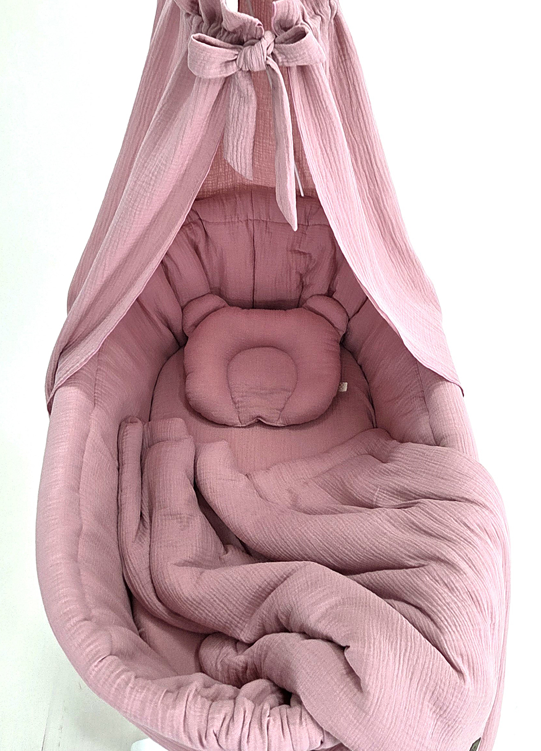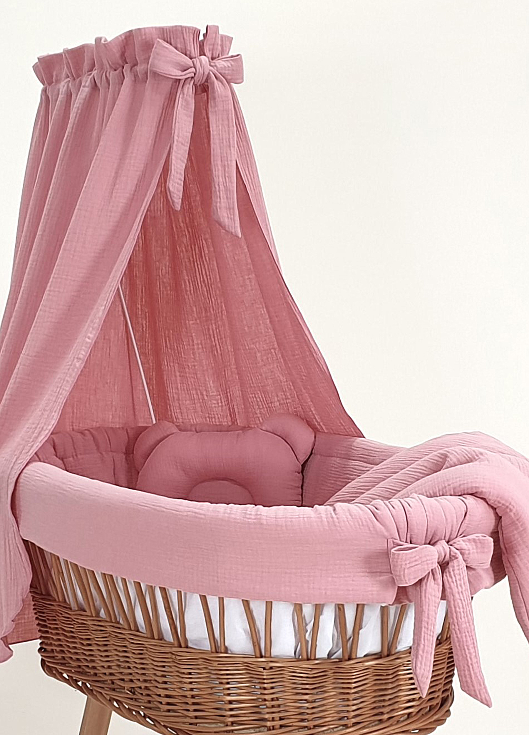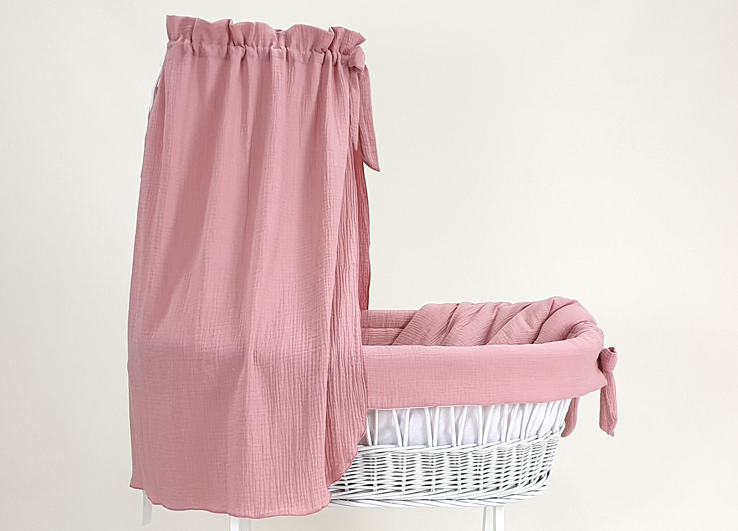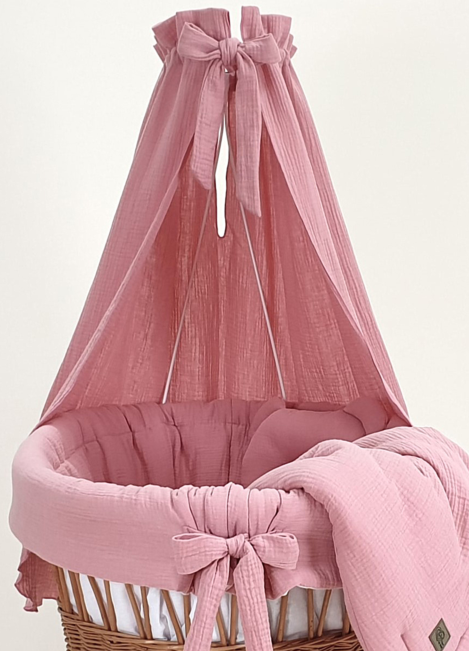 Verleihen Sie Ihrem Stubenwagen einen neuen, stilvollen Look und schaffen Sie einen gemütlichen Schlafplatz für Ihr Baby mit unserem kompletten Textilset aus weichem, atmungsaktivem Musselin in der Farbe Puderrosa. Dieses hochwertige Set enthält alles, was Sie benötigen, um Ihren Stubenwagen zu erneuern und Ihrem Kind Komfort sowie Sicherheit zu bieten.