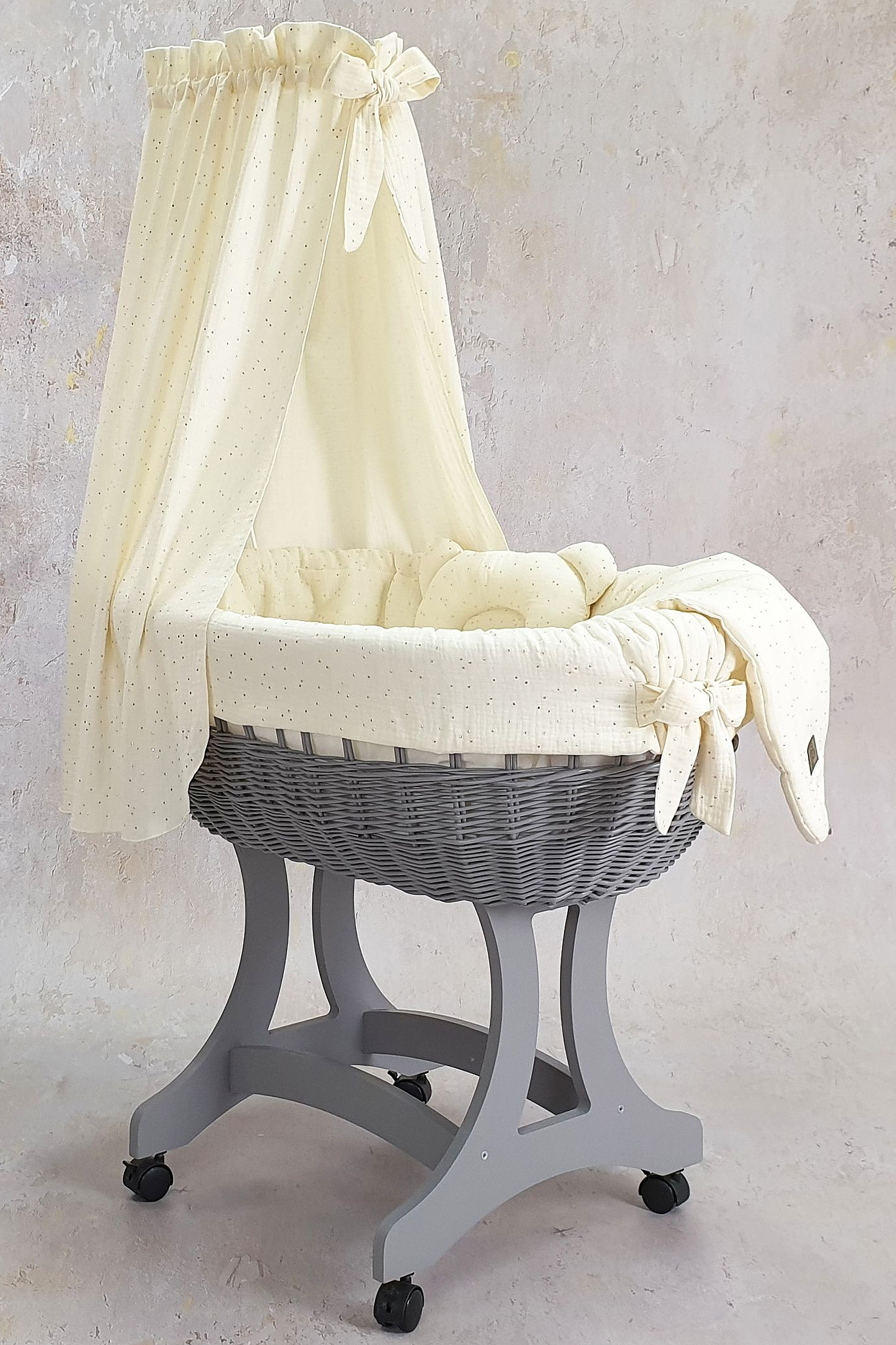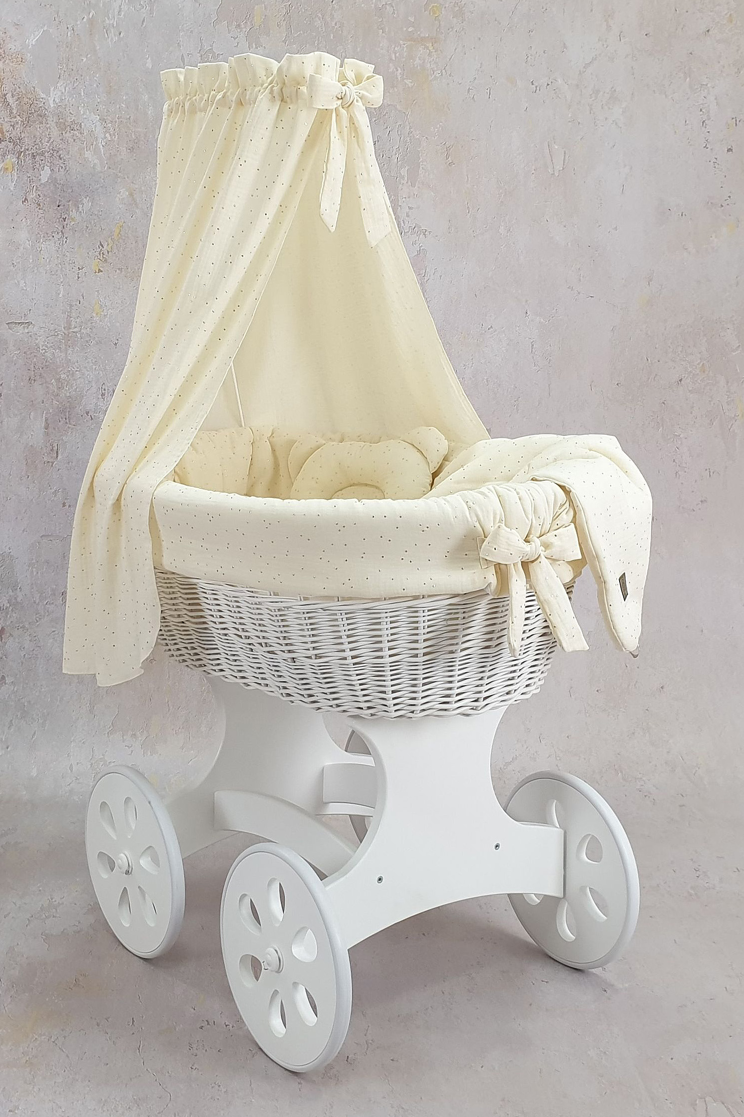 - Korbbezug (aus Musselin mit goldenen Punkten) mit Füllung
