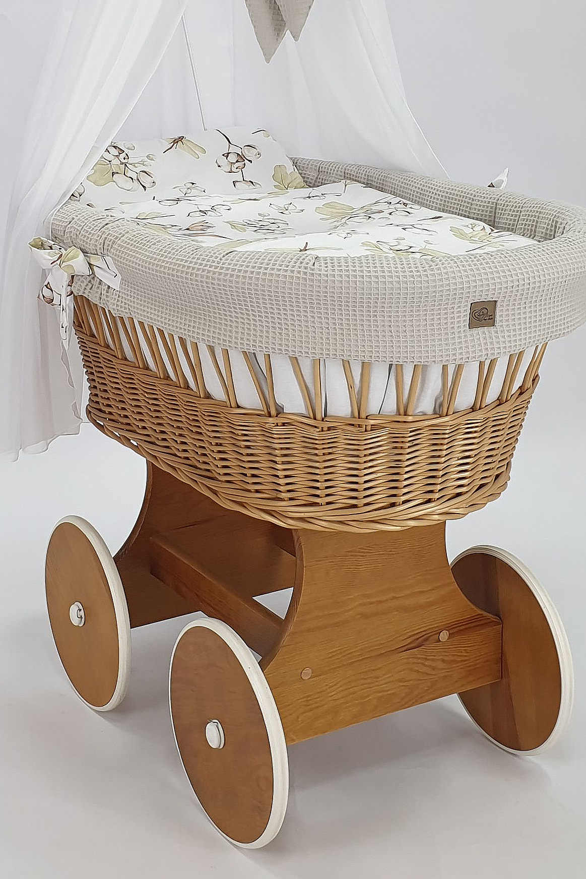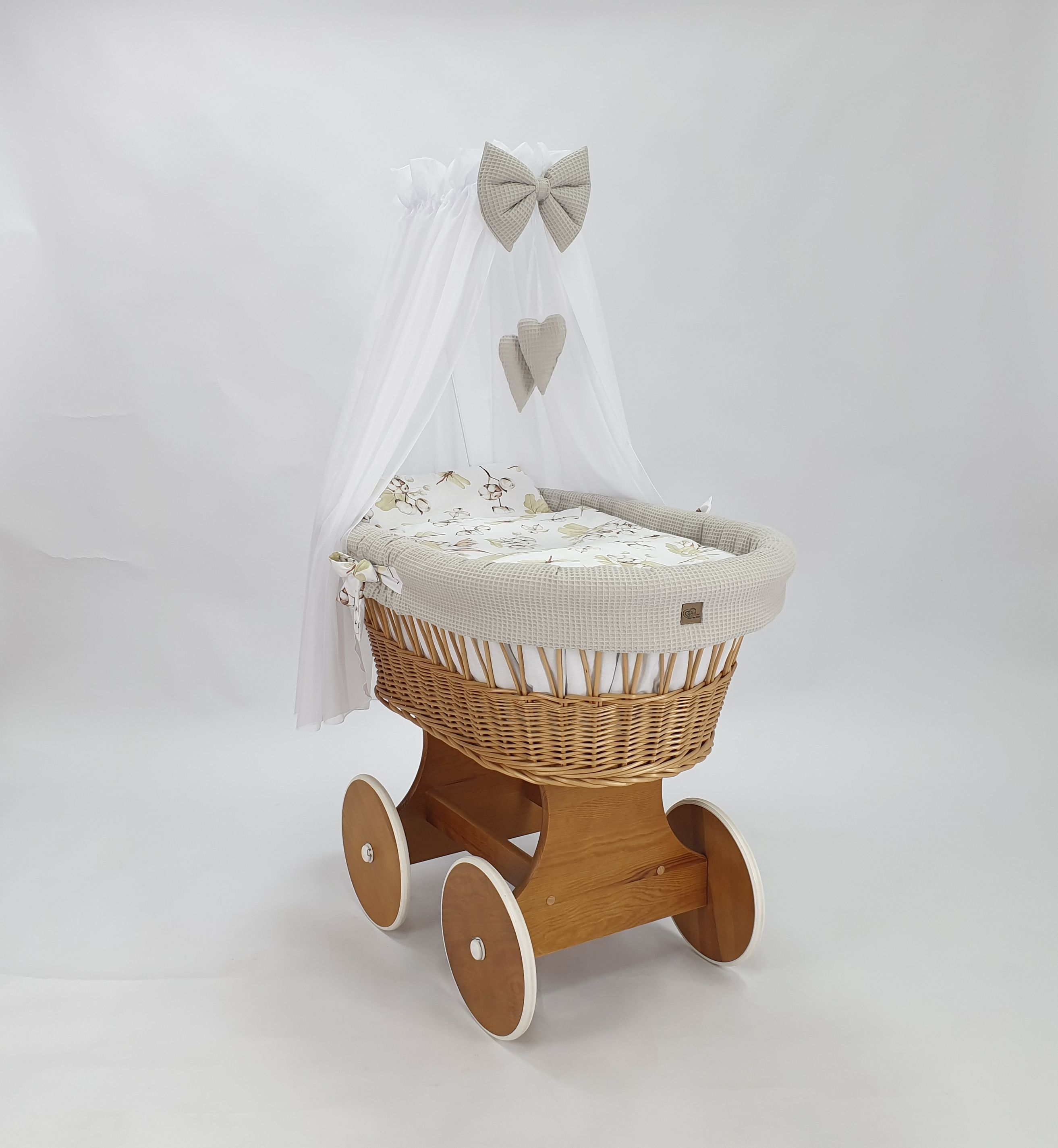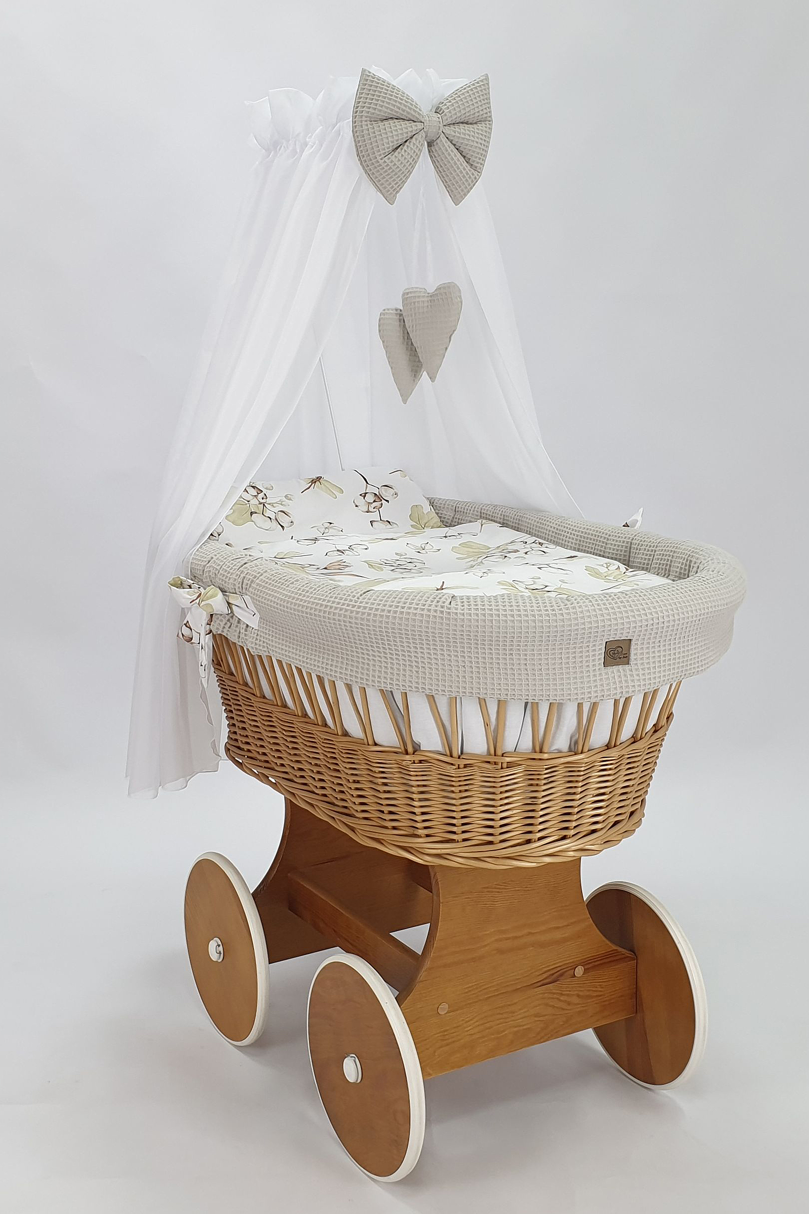 Handgefertigte Perfektion: Jeder Stubenwagen wird von Hand aus natürlichem, hochwertigem polnischem Weidenholz geflochten und mit einer sicheren, umweltfreundlichen Farbe für Kinder bemalt. Dieses traditionelle Handwerk macht jeden Wagen zu einem Unikat, das mit Liebe zum Detail gefertigt wird.