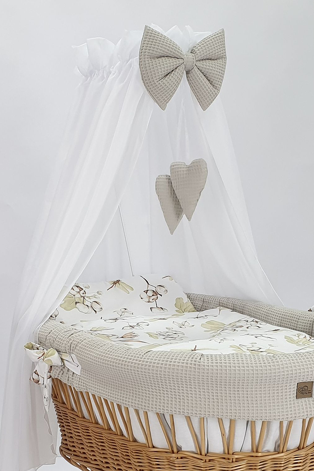 Das maximale Gewicht des Kindes beträgt 9kg, und mit dem 5-teiligen Bettwäsche-Set in Beige sind Sie bestens ausgestattet. Enthalten sind ein Korbbezug mit Füllung, eine Bettwäsche 2in1 (Kissen 30x40cm und Decke 70x80cm zusammengenäht), sowie eine Schaumstoffmatratze 70x38x4cm und ein passendes Spannbetttuch.