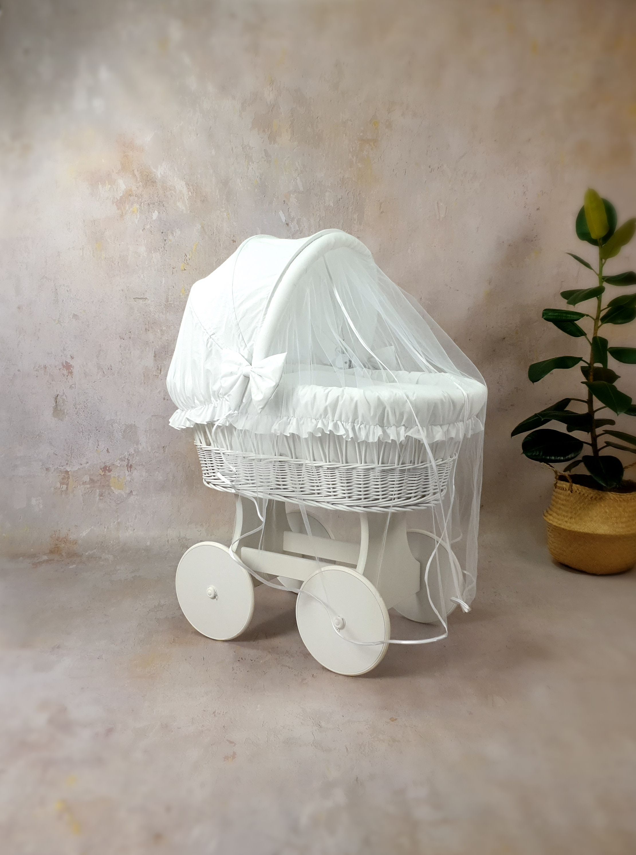 Baby Stubenwagen-Set mit Ausstattung - Gestell und Räder weiß lackiert, Ausstattung weiß