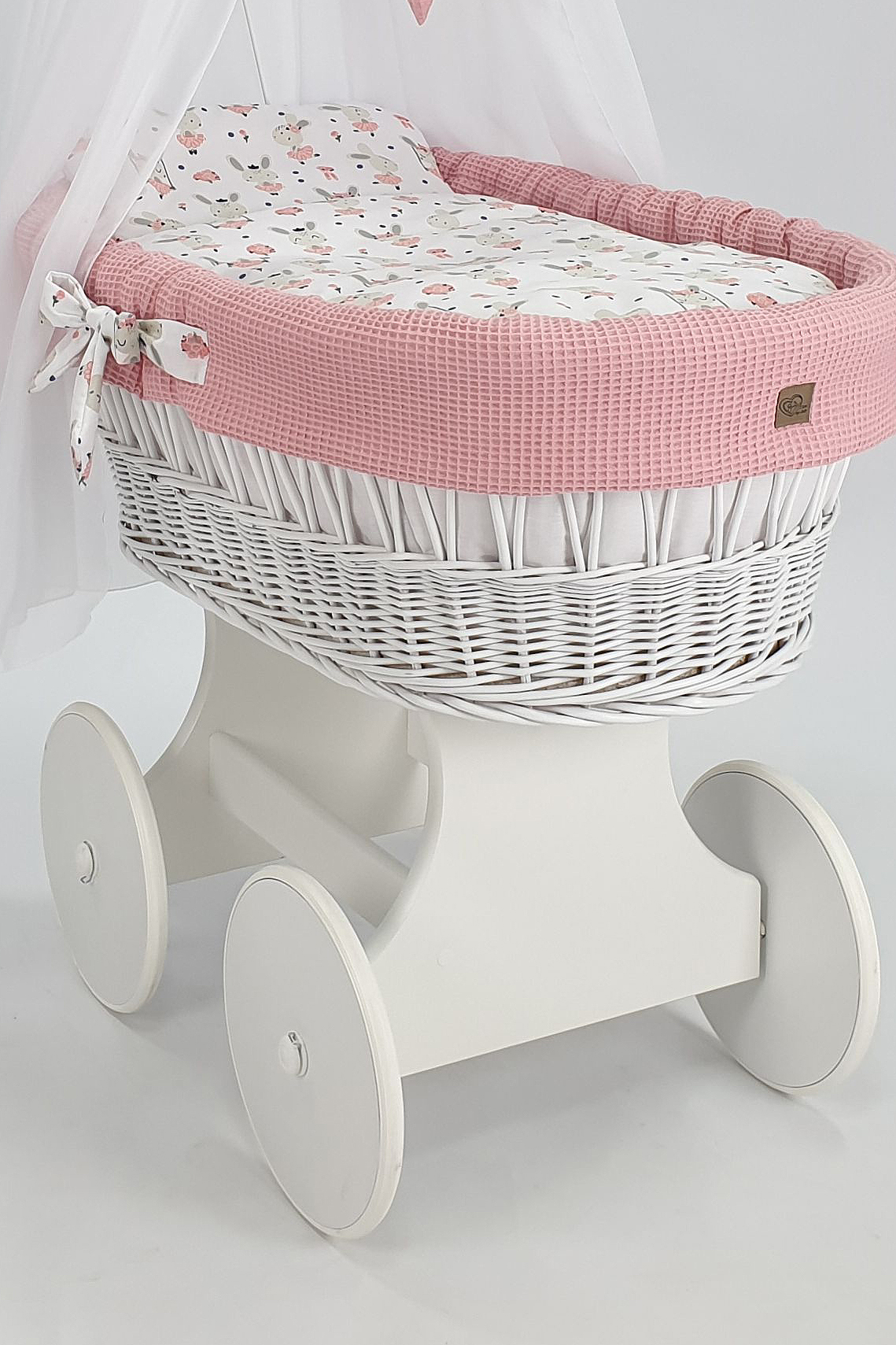 Handgefertigte Perfektion: Jeder Stubenwagen wird von Hand aus natürlichem, hochwertigem polnischem Weidenholz geflochten und mit einer sicheren, umweltfreundlichen Farbe für Kinder bemalt. Dieses traditionelle Handwerk macht jeden Wagen zu einem Unikat, das mit Liebe zum Detail gefertigt wird.