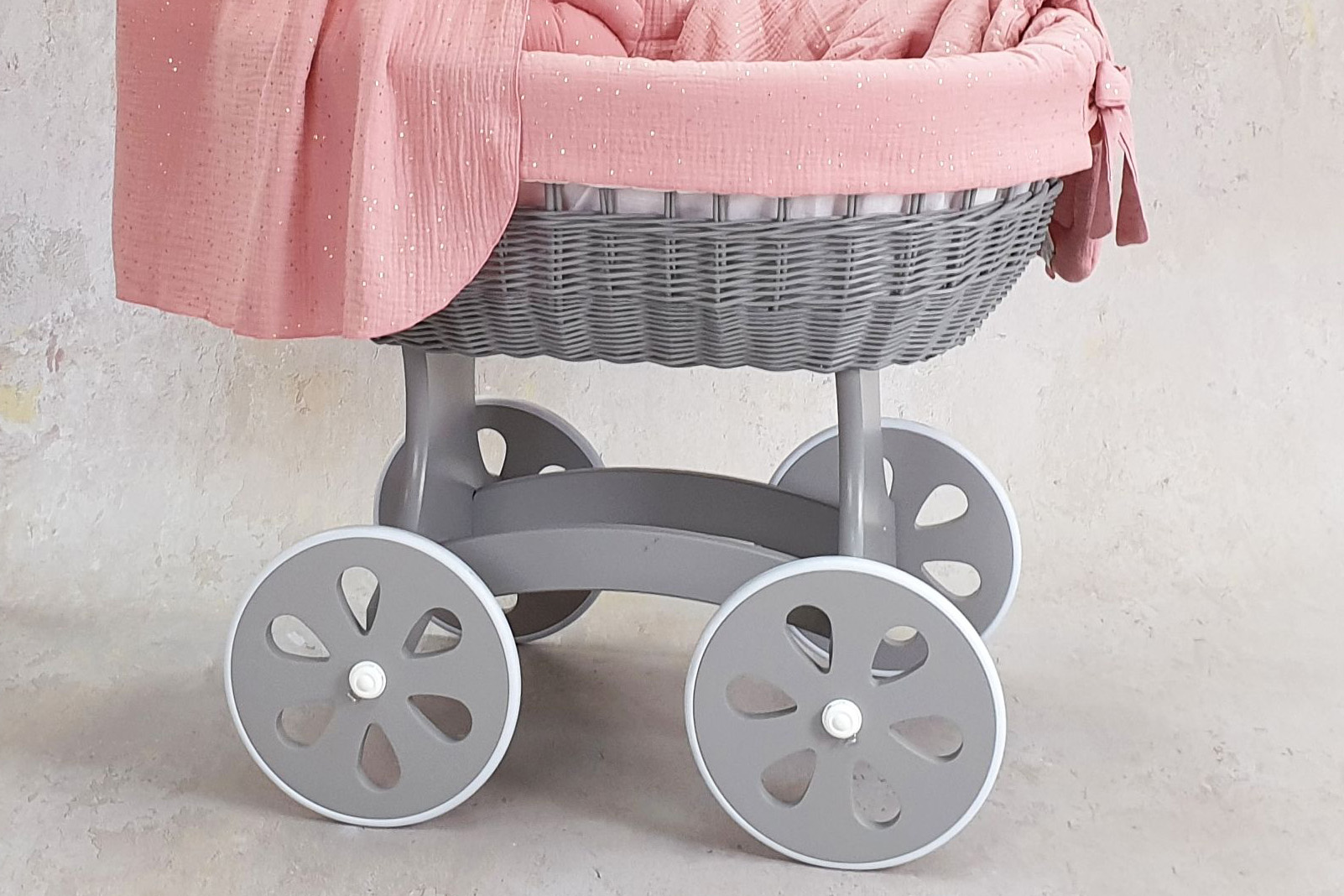 Das solide Holzgestell ist aus hochwertigem Buchenholz gefertigt. Die drehbaren Holzräder mit zwei Bremsen gewährleisten die Sicherheit Ihres Kindes und ermöglichen gleichzeitig eine einfache Handhabung des Wagens. Jeder unserer Stubenwagen wird von Hand aus natürlicher, hochwertiger polnischer Weide geflochten und mit einer sicheren, umweltfreundlichen Farbe bemalt, die alle erforderlichen Normen erfüllt.