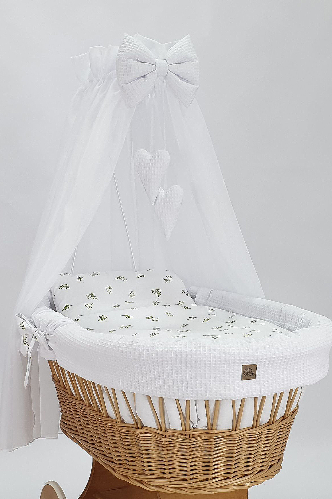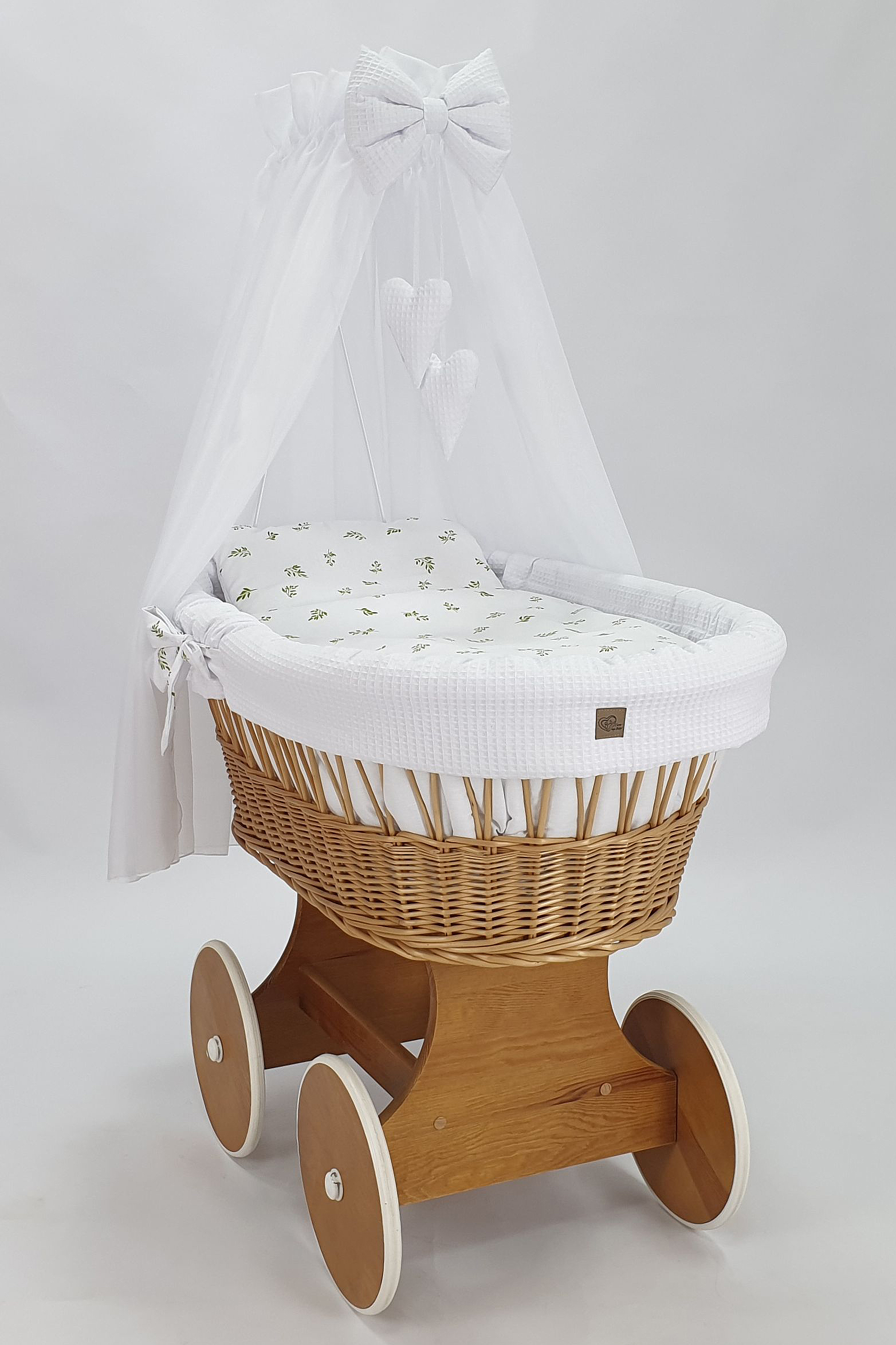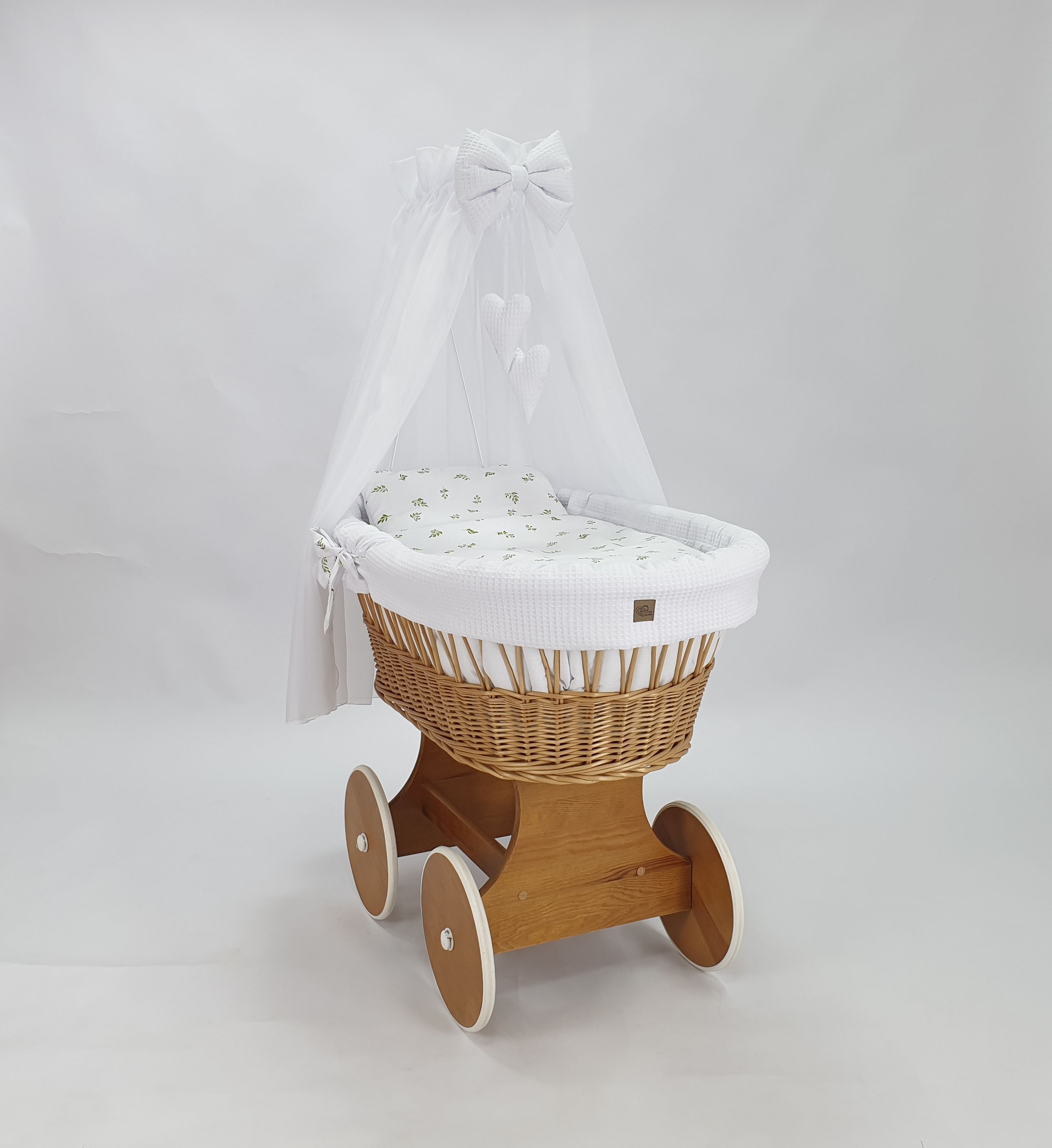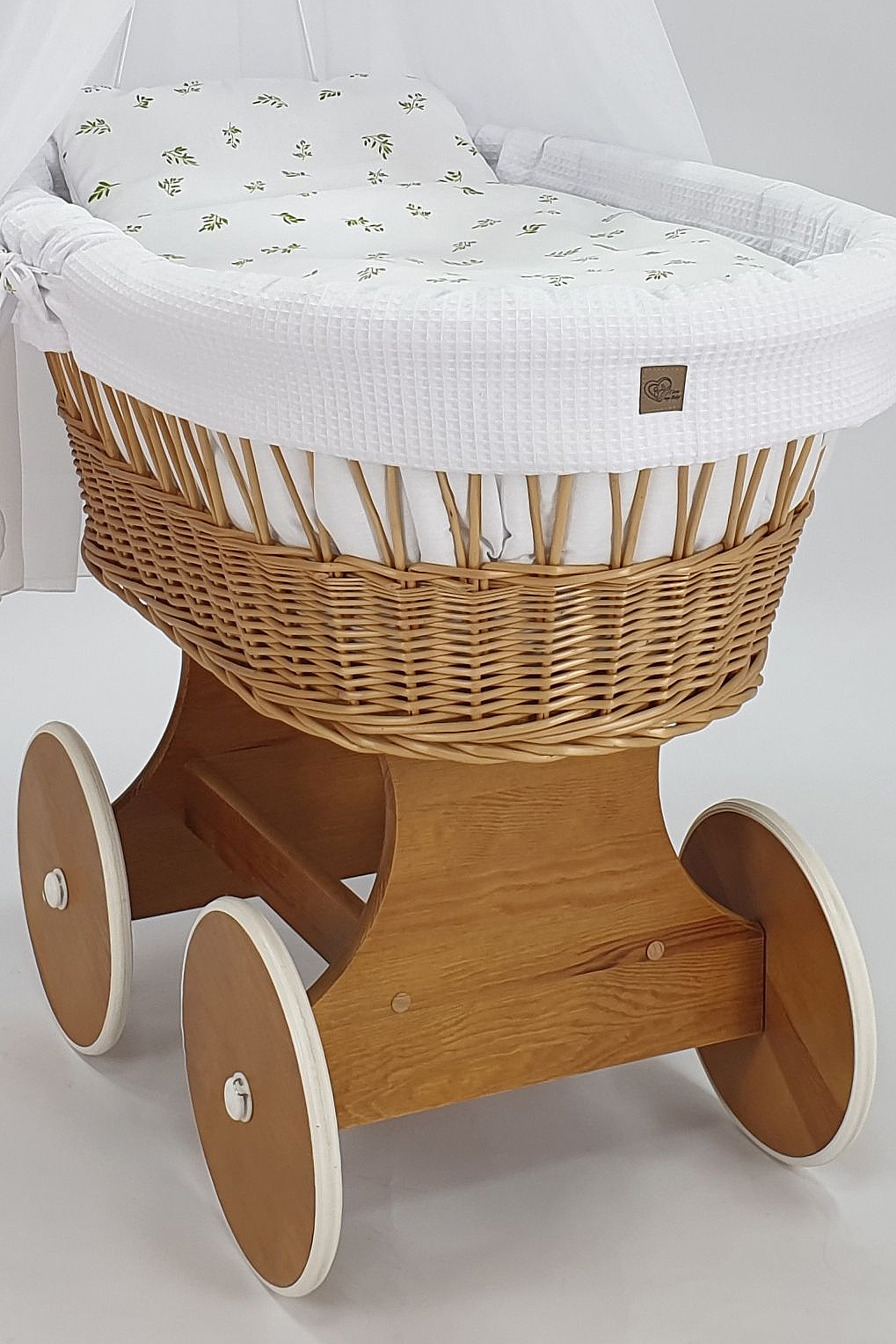 Handgefertigte Perfektion: Jeder Stubenwagen wird von Hand aus natürlichem, hochwertigem polnischem Weidenholz geflochten und mit einer sicheren, umweltfreundlichen Farbe für Kinder bemalt. Dieses traditionelle Handwerk macht jeden Wagen zu einem Unikat, das mit Liebe zum Detail gefertigt wird.