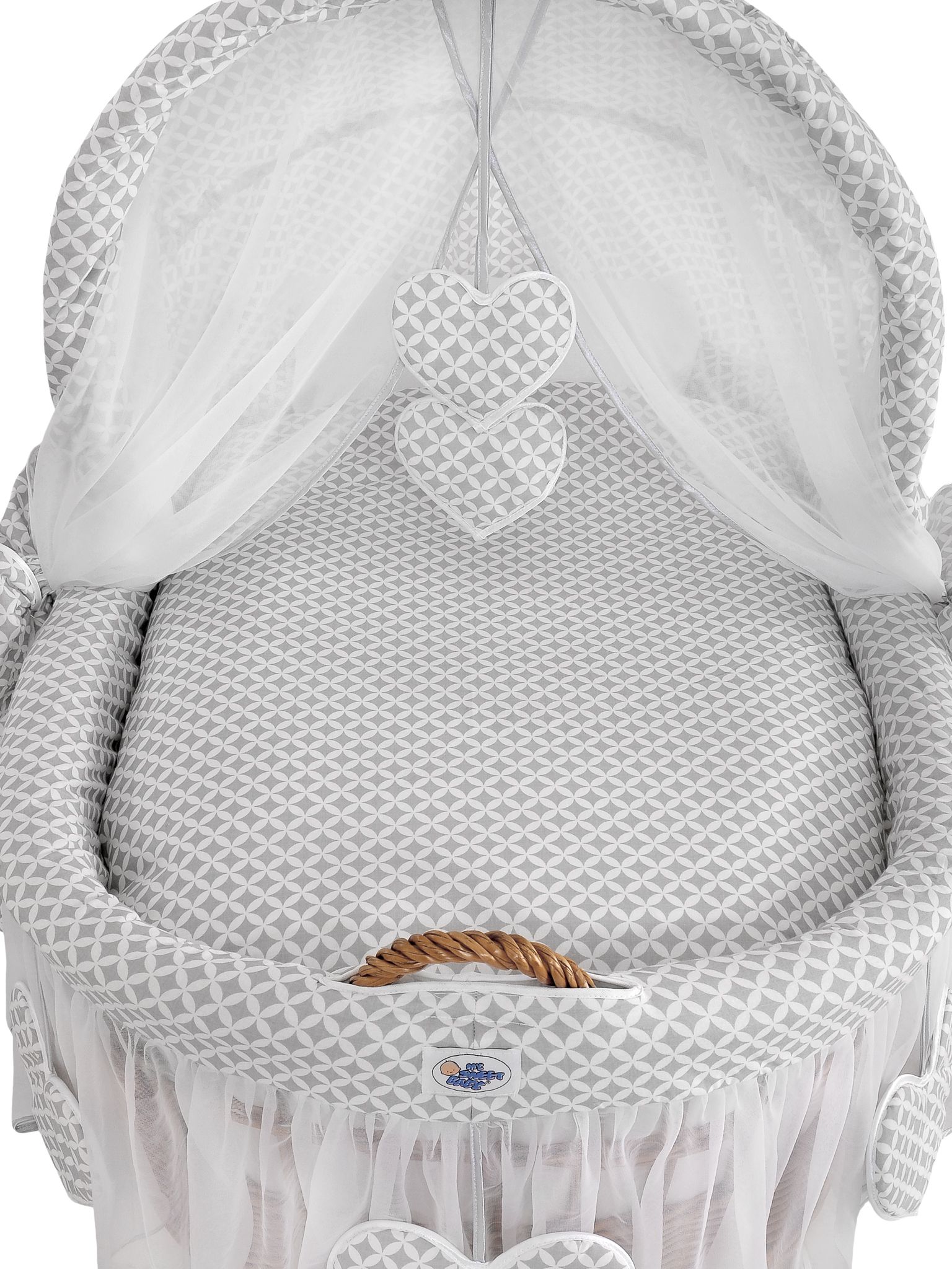 Stubenwagen mit Haube- Amelie Blumenmuster grau Eine ausgezeichnete Lösung für kleine Wohnungen oder Haus. Leise Räder ermöglichen eine einfache Einstellung des Korbs. Dank dessen ist das Kind immer bei dir.