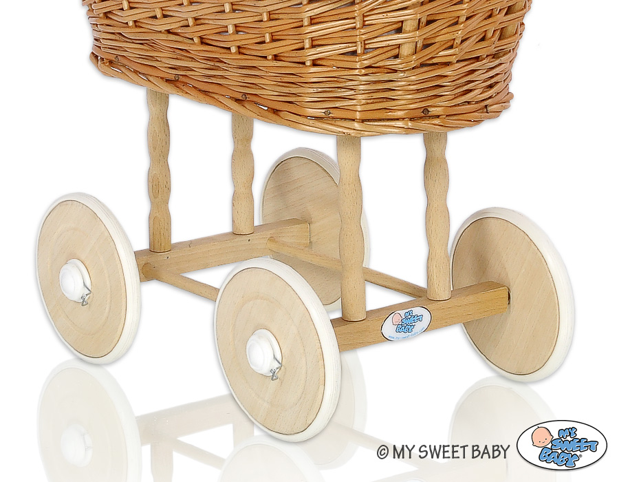Gesamtaße Puppenwagen: L ? 50/52cm, B ? 32/33 cm, H-69 cm.