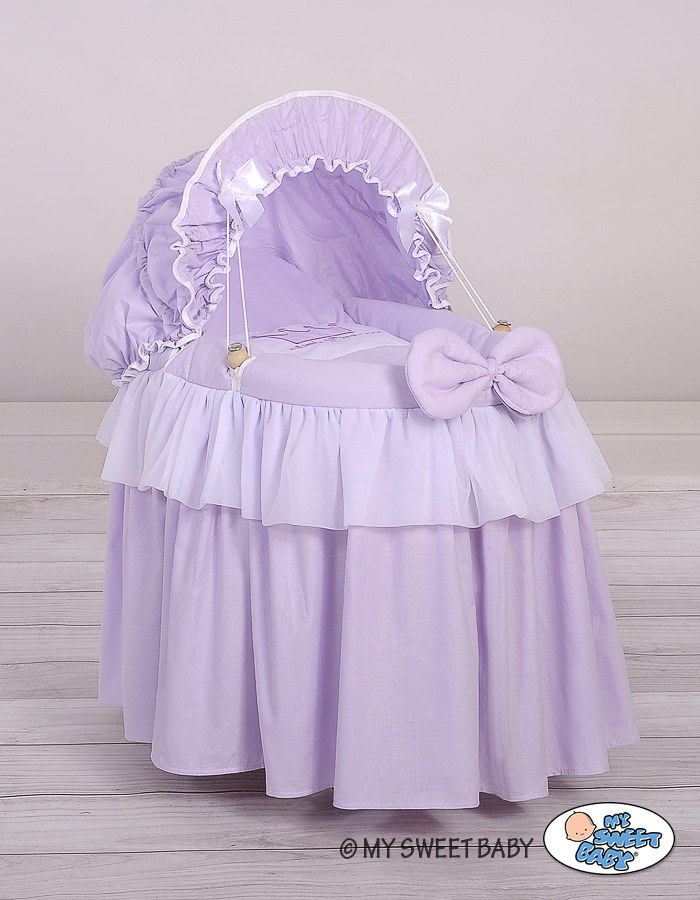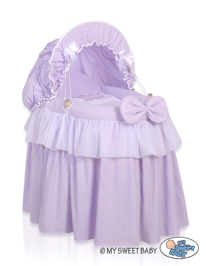 Sowohl der Korb aus Weide, als auch das Holzuntergestell entstehen in Handarbeit. Bezug aus 100% Baumwolle mit decorativen Rüschen.